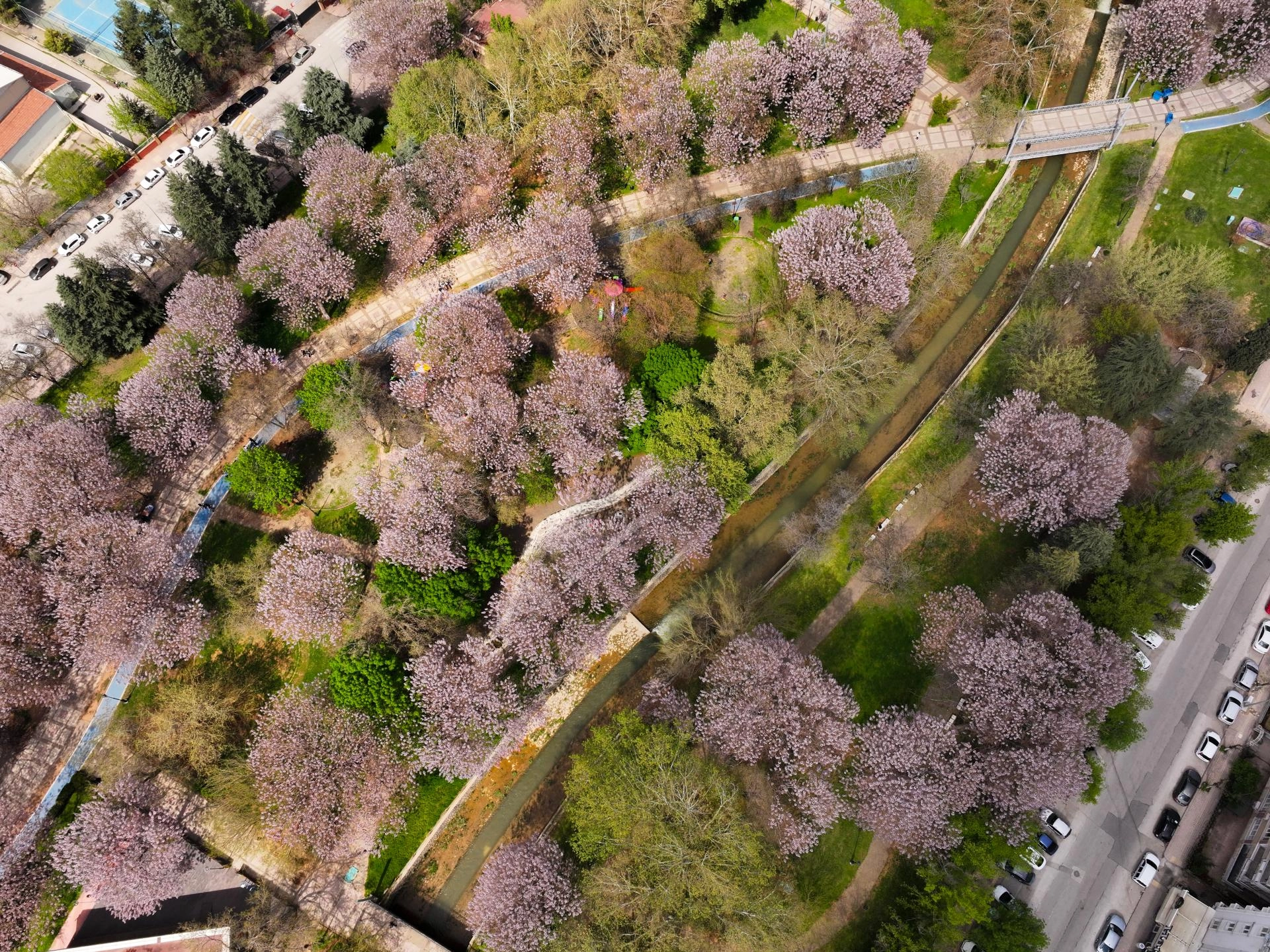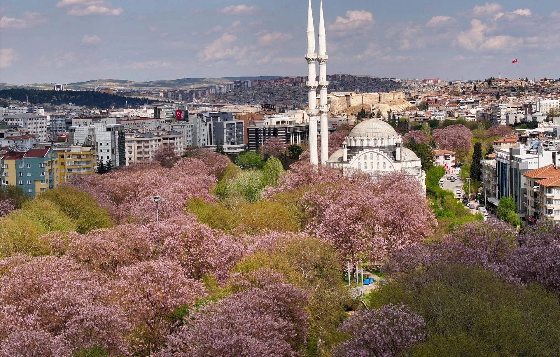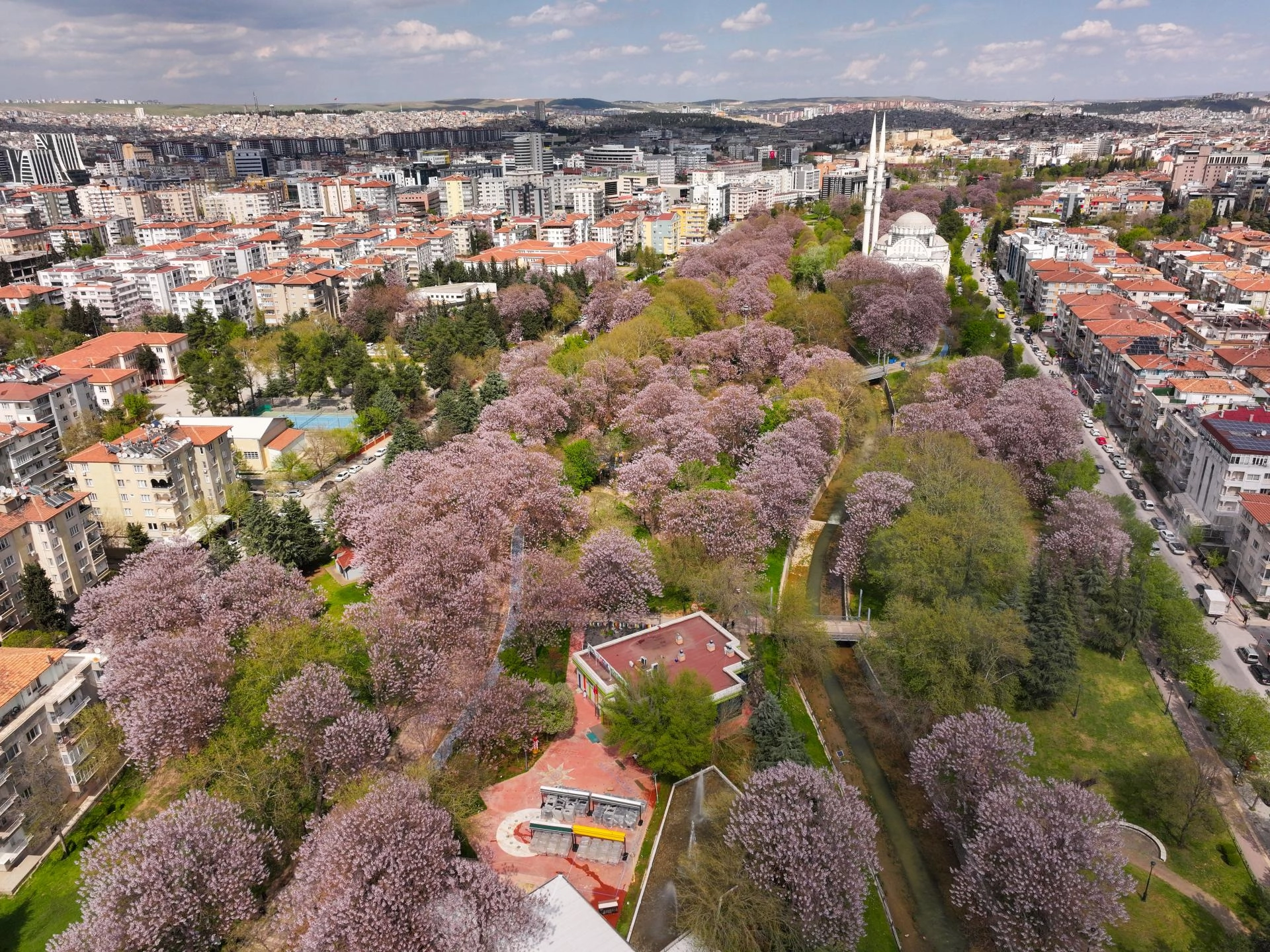 Kentin merkezinin önemli yeşil alanlarından olan 100. Yıl Atatürk Kültür, Festival ve Kavaklık parklarında yer alan pavlonya ağaçları baharla birlikte çiçek açtı.