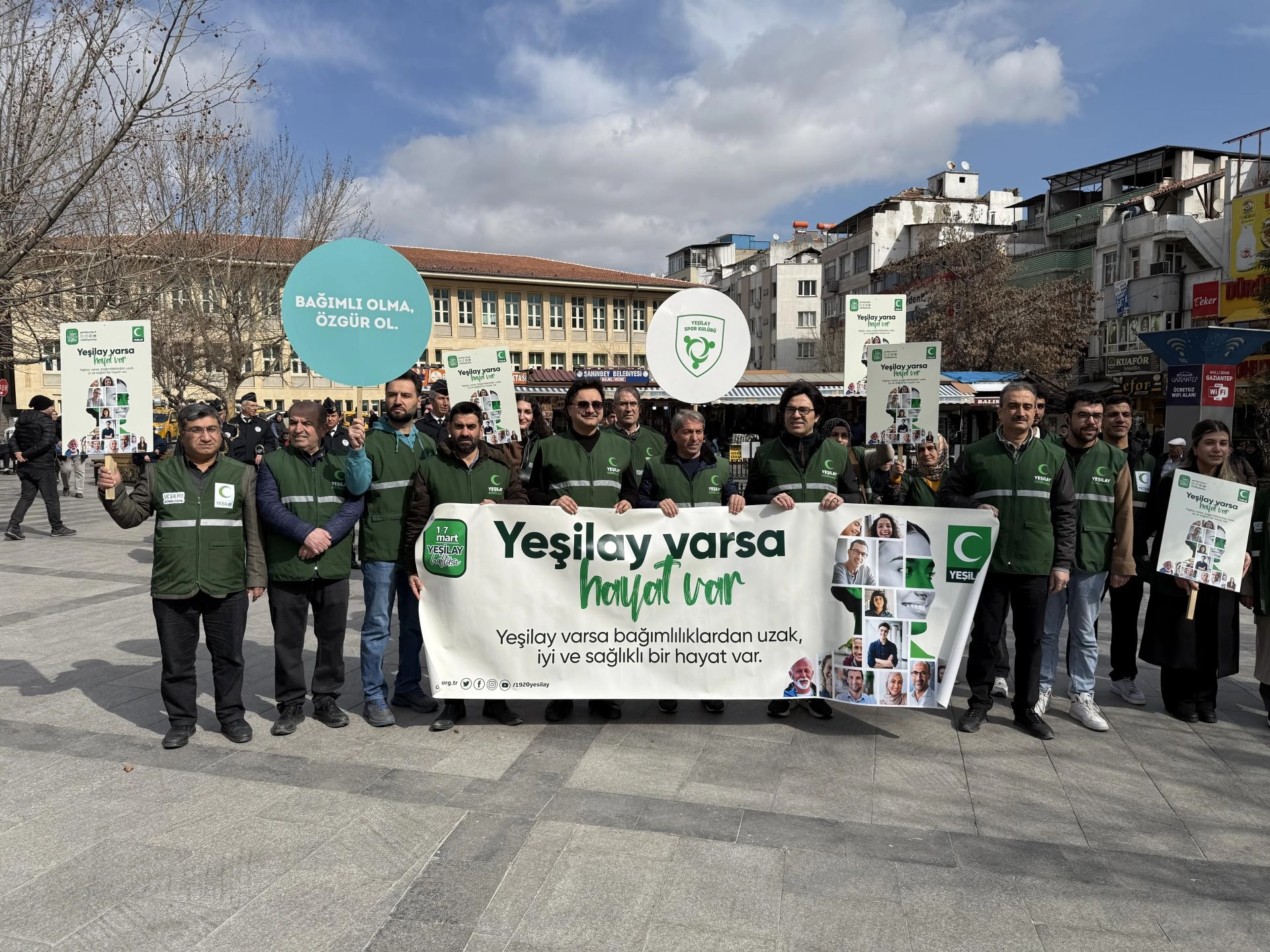 Yürüyüşe katılan gönüllüler, "Bağımlı olma, özgür ol", "Yeşilay varsa hayat var" yazılı dövizler taşıdı.