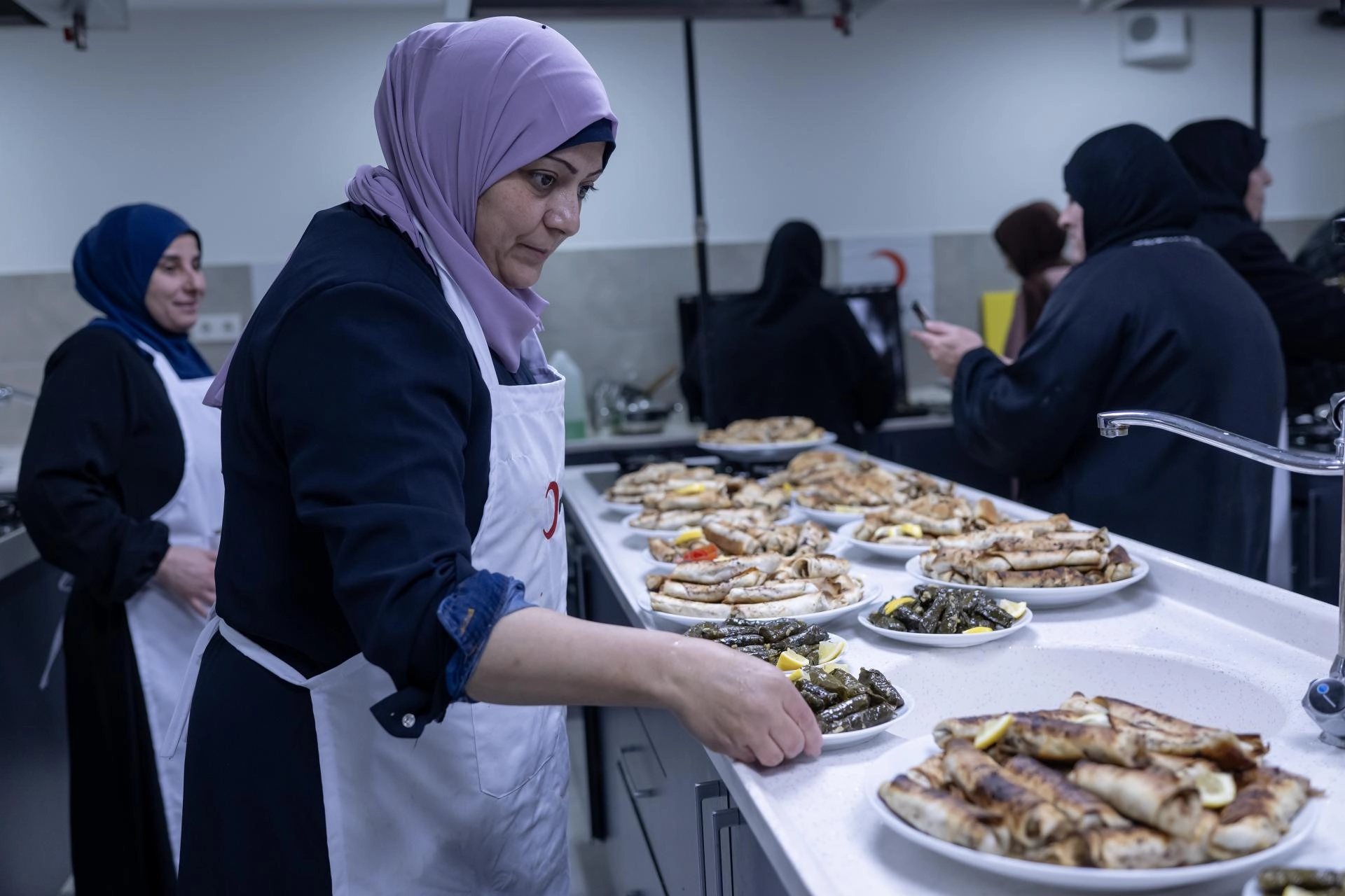 Ankara Gönüllü Merkezi'nde düzenlenen programda, Filistin mutfağına özgü yemekler hazırlayan kadınlar, iftarda Türk Kızılay Genel Başkanı Fatma Meriç Yılmaz ile bir araya geldi.