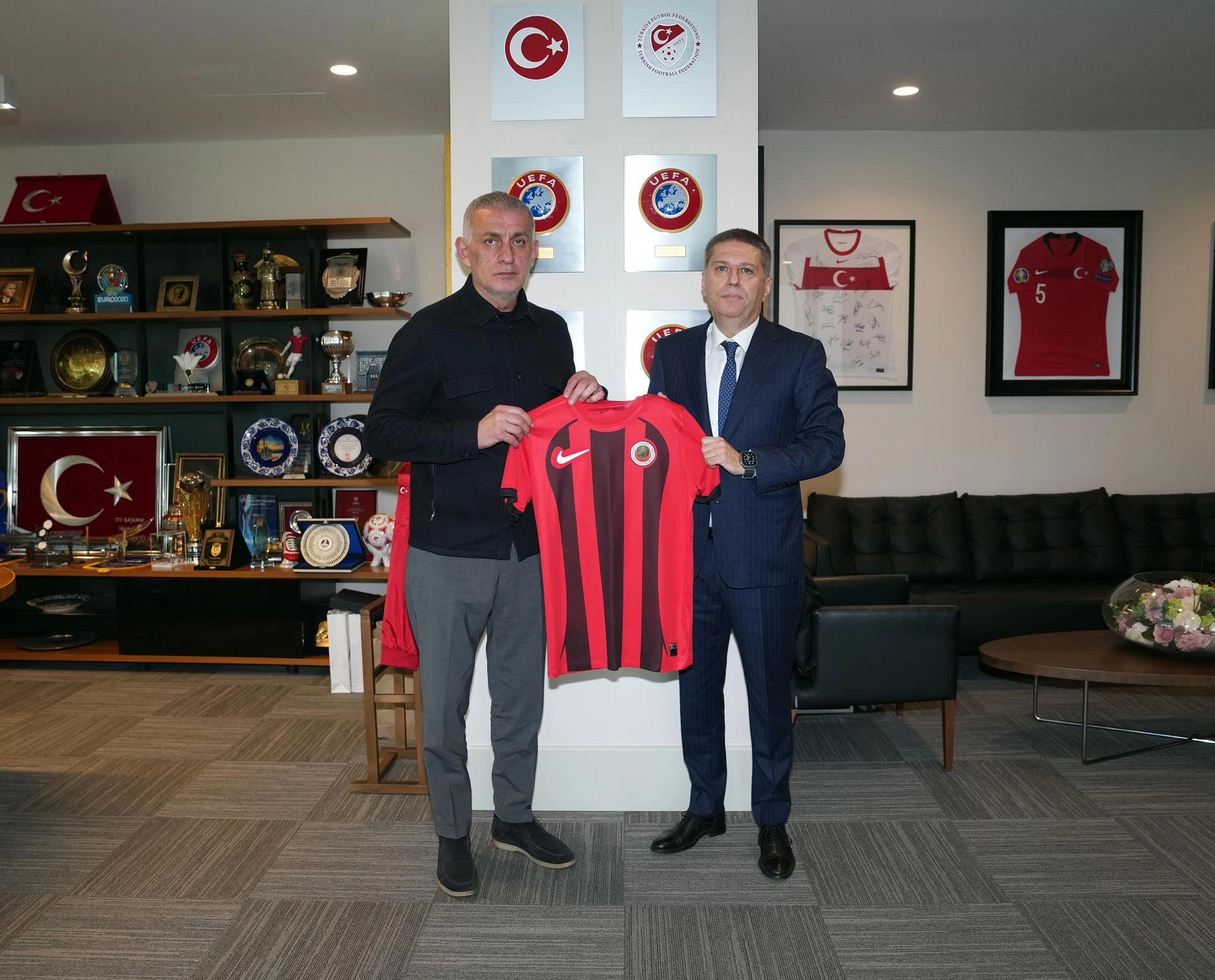 Arda Çakmak da Hacıosmanoğlu ile TFF Başkan Vekilleri Mecnun Otyakmaz, Fuat Göktaş, TFF Yönetim Kurulu Üyeleri Mustafa Temel Bozbağ, Bilal Arslan, TFF Genel Sekreteri Abdullah Ayaz ve TFF Mali İşler Direktörü Özkan Kılık'a Gençlerbirliği forması verdi.