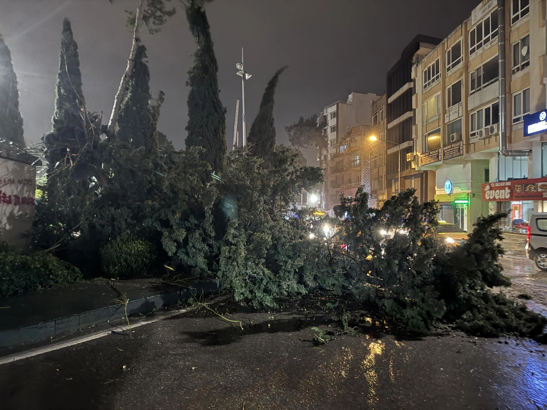 Fırtına ve kuvvetli yağış, Antalya kent merkezinde de hayatı olumsuz etkiledi. Birçok ağaç fırtına nedeniyle devrildi. Kepez ilçesinde bir spor tesisinin çatısı çöktü.