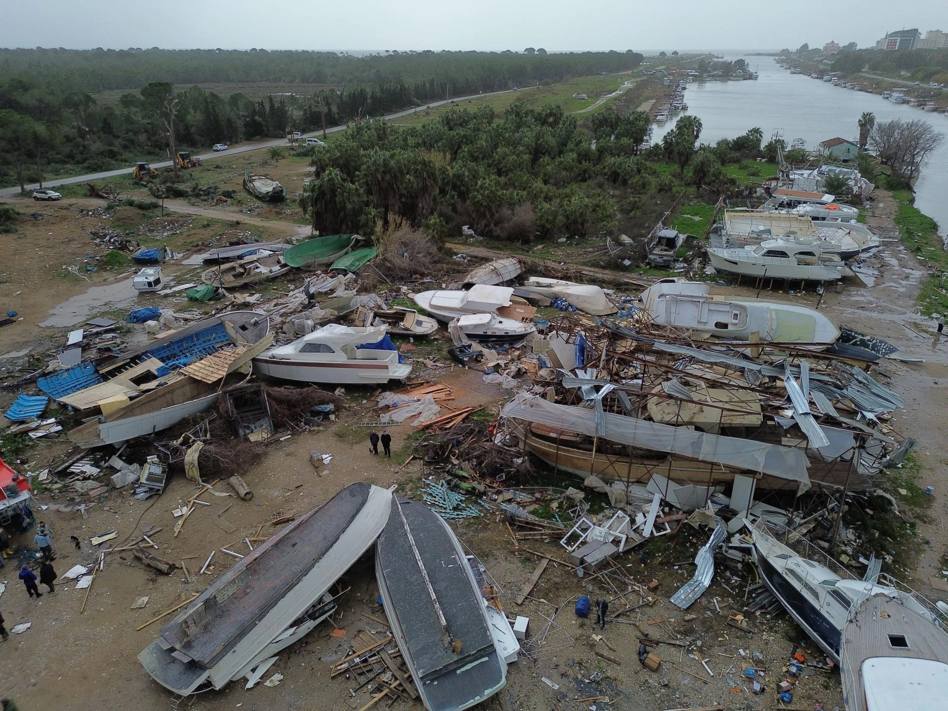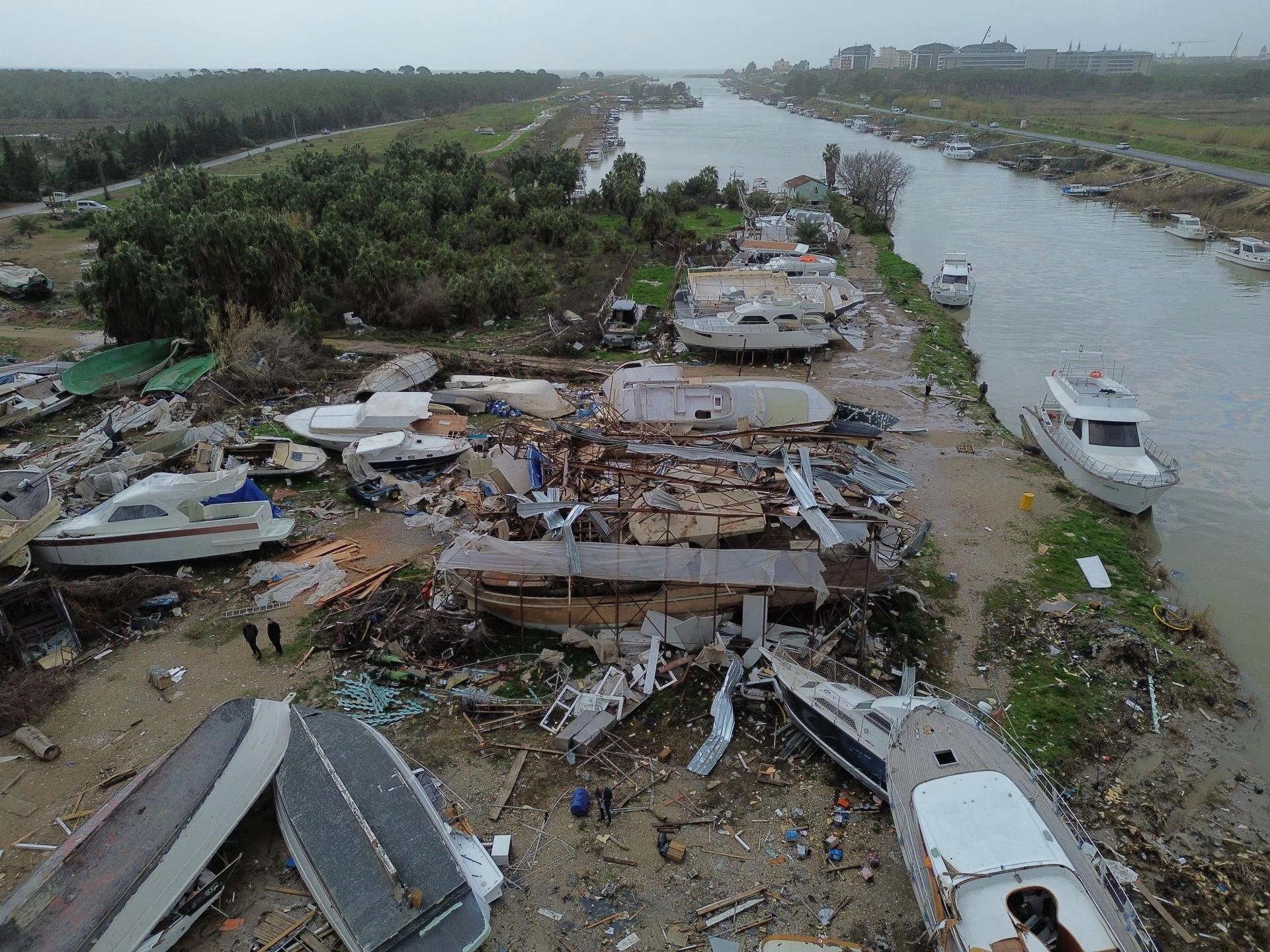 Görüntülerde, çok sayıda farklı boylardaki teknede hasar oluştuğu görüldü. Teknelerden bazılarının parçalandığı, bazılarının ters döndüğü, bazılarının da devrildiği dikkati çekti.