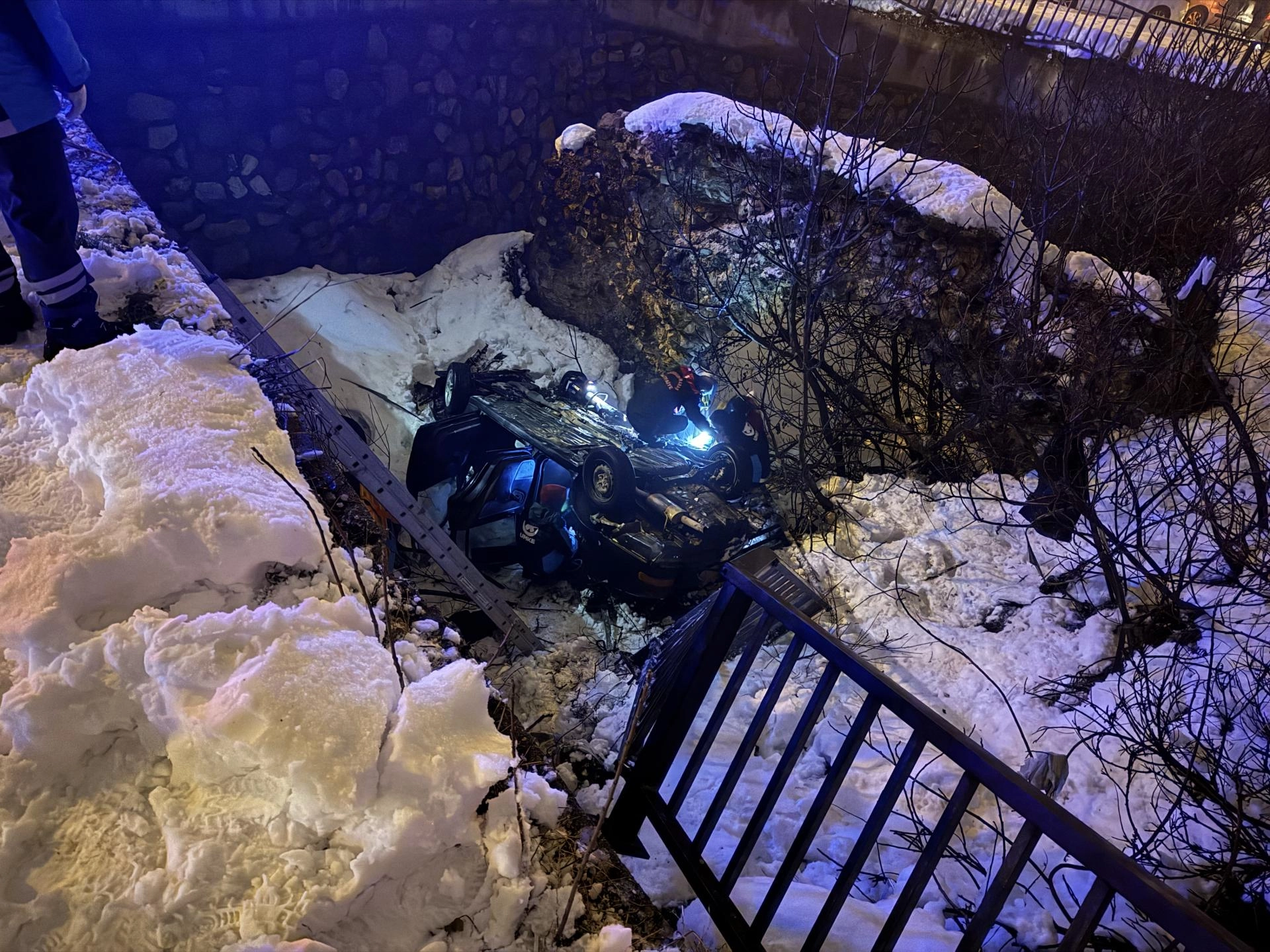 A.K. idaresindeki 09 ALN 491 plakalı otomobil, Yörükselim Mahallesi Hikmet Kabakçı Bulvarı'nda bulunan Akdere Köprüsü'nden düştü.