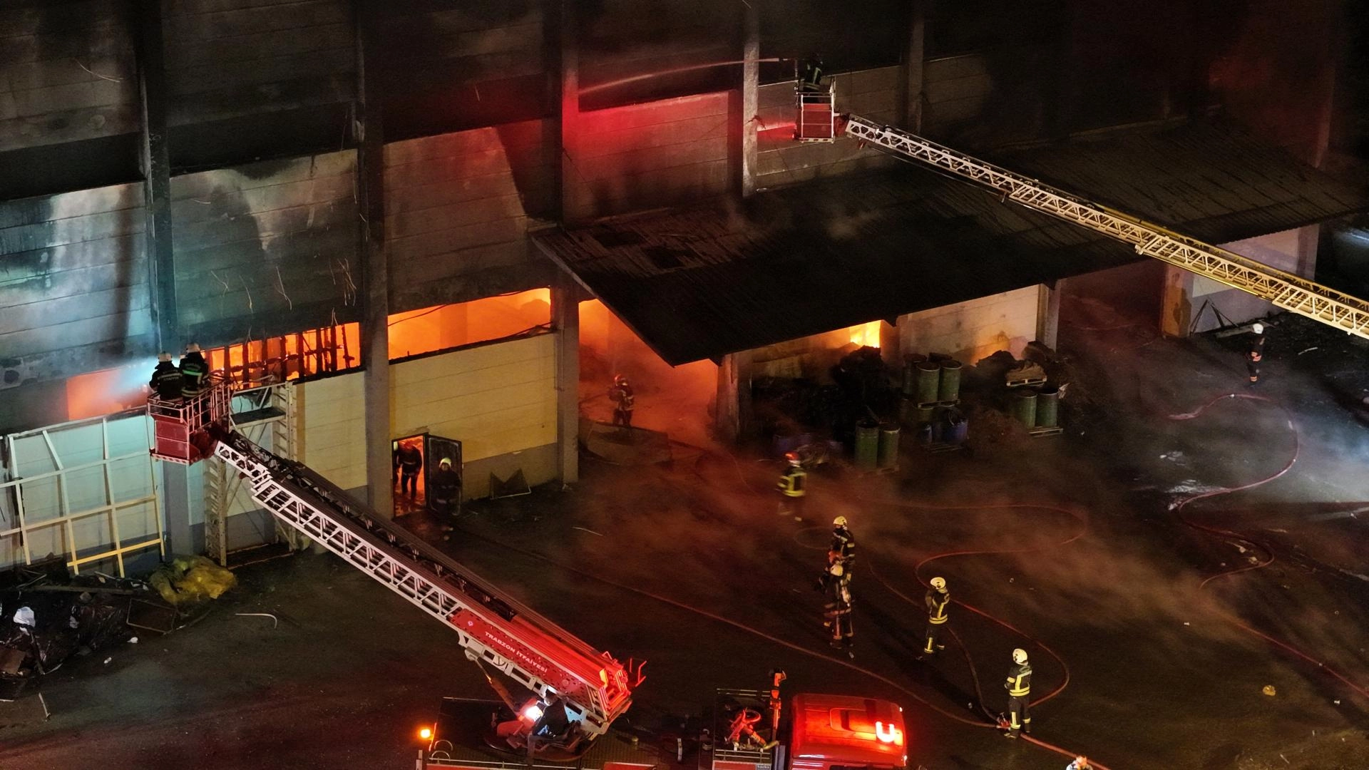 GÜNCELLEME - Trabzon'da fındık fabrikasının deposunda çıkan yangına müdahale ediliyor