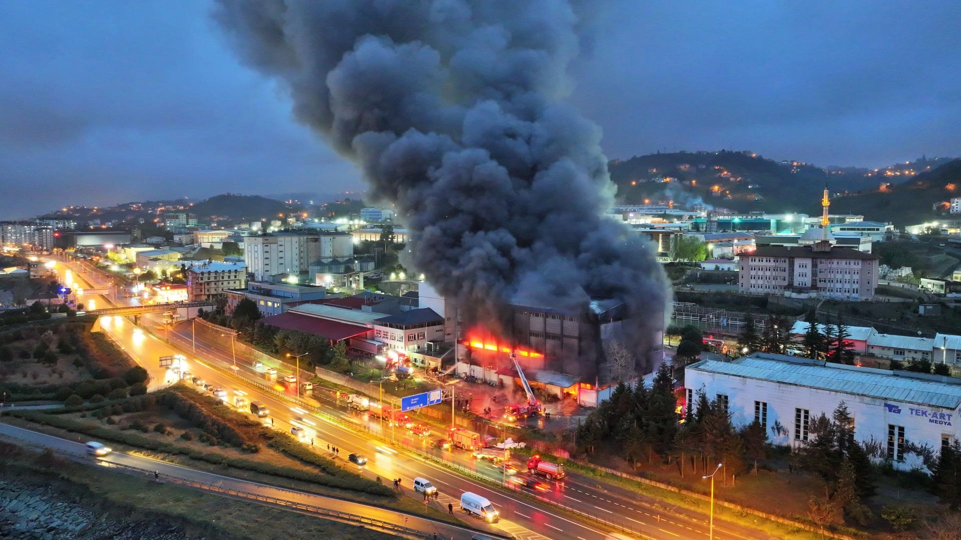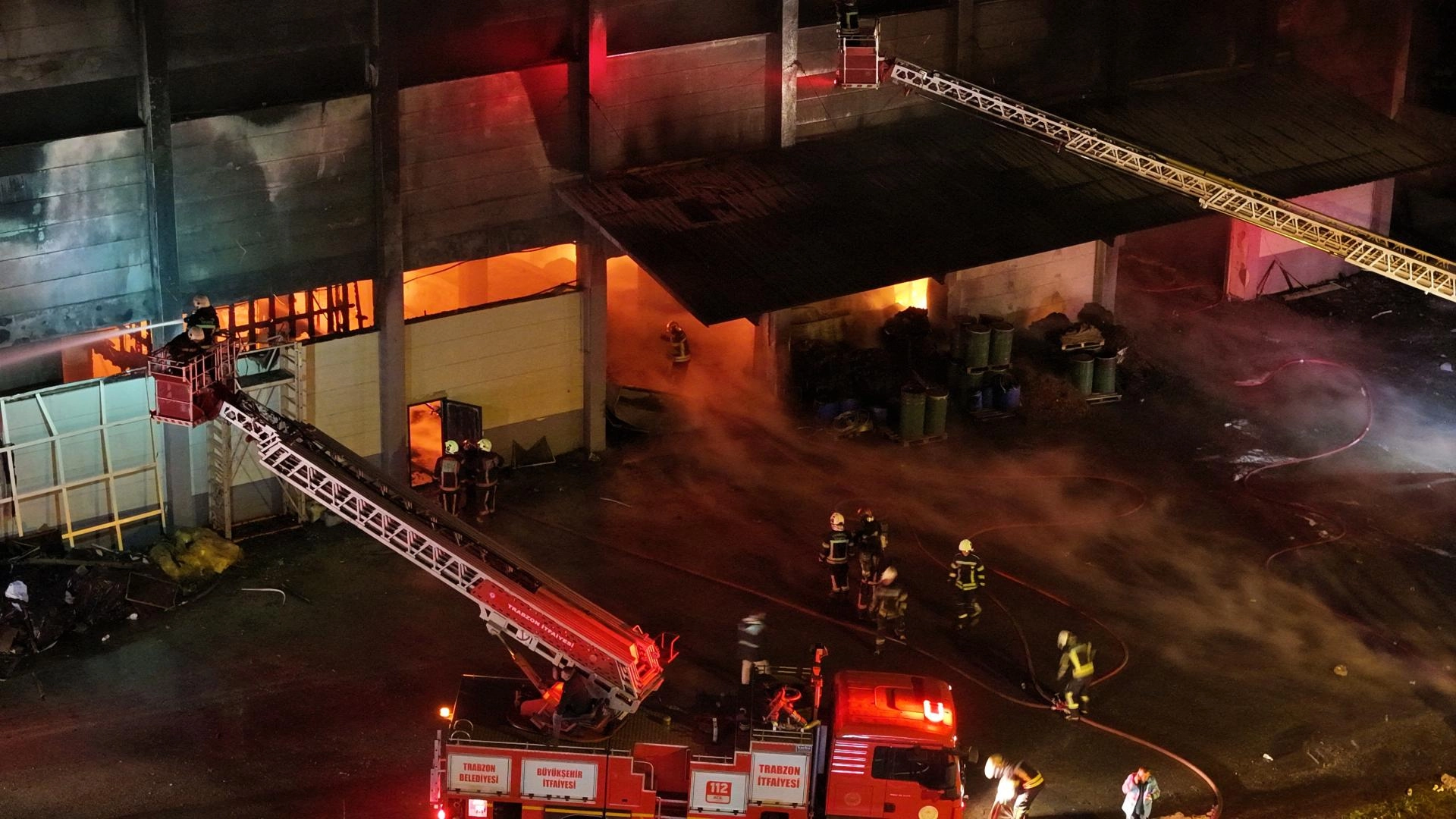 TRABZON (AA) - Trabzon’un Arsin ilçesinde bir fındık fabrikasının deposunda çıkan yangına itfaiye ekipleri müdahale ediyor.