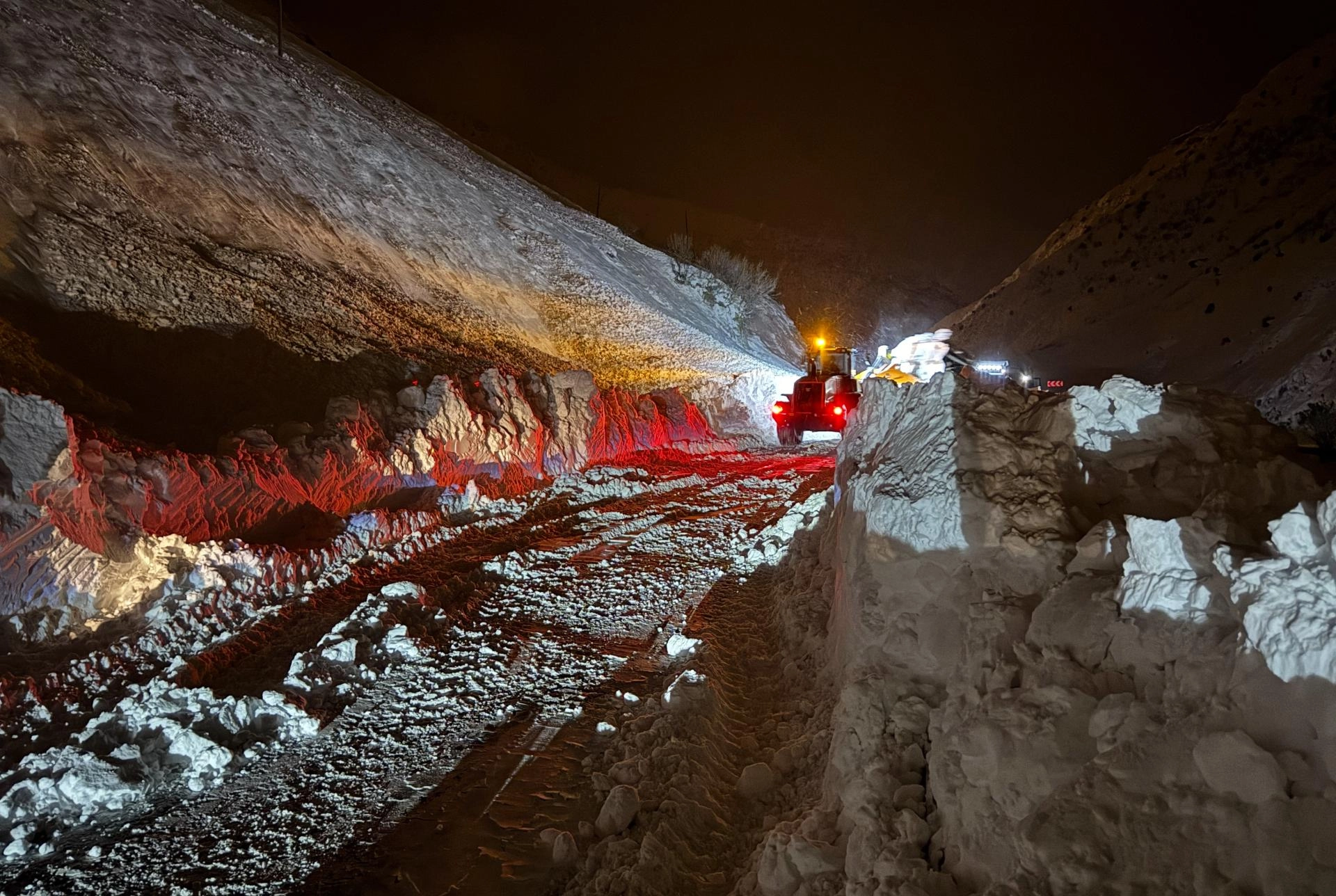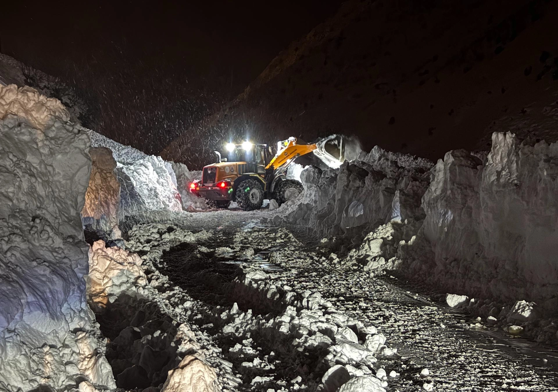 Kapanan yoldaki sürücülerin haber vermesi üzerine bölgeye yönlendirilen Karayolları 114. Şube Şefliği ekipleri, yaptıkları çalışmayla yoldaki kar yığınlarını temizledi.