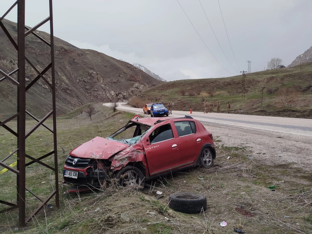 Hakkari-Van kara yolunda sürücüsü öğrenilemeyen 21 AEU 036 plakalı otomobil, kontrolden çıkarak elektrik direğine çarptı.