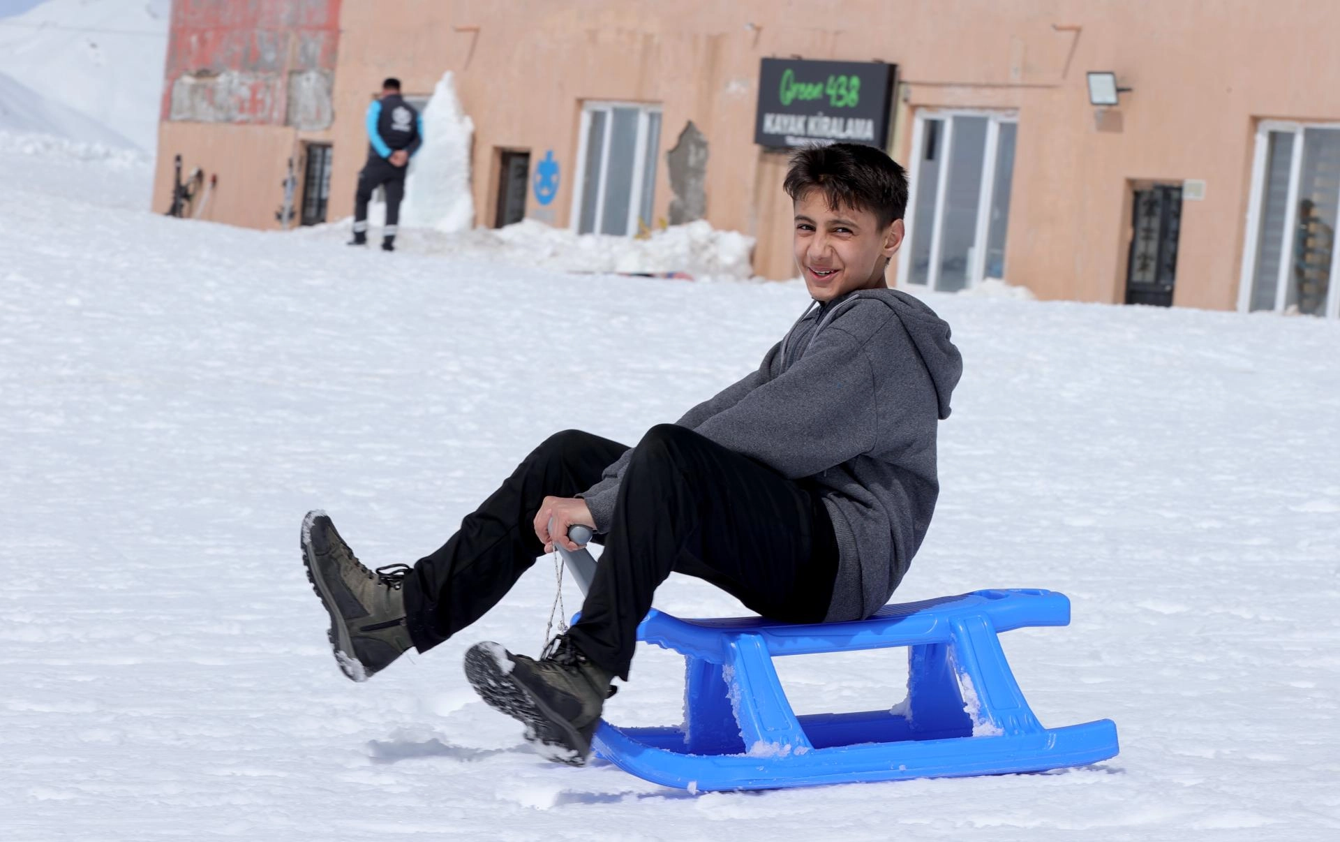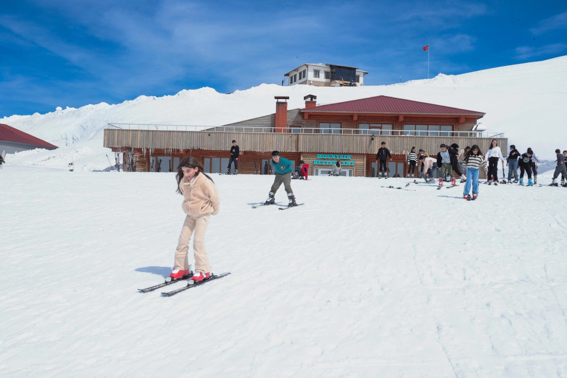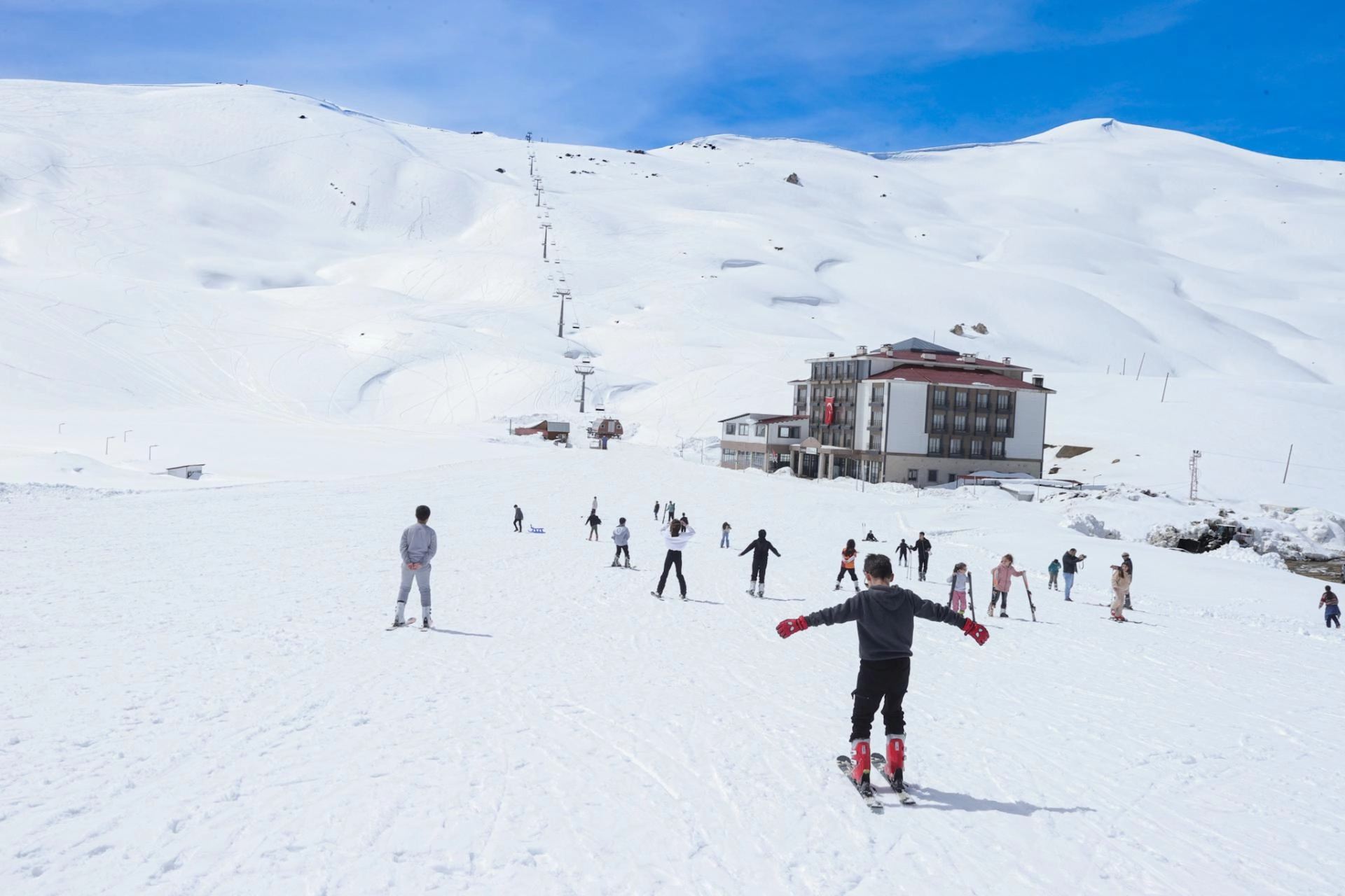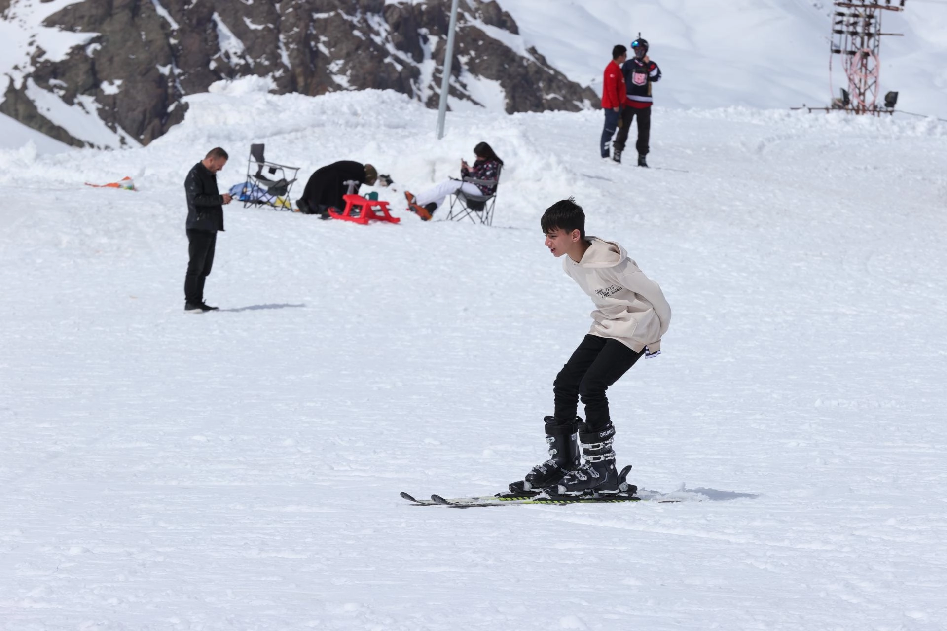 Hakkari'deki kayak merkezinde baharda da kayak keyfi yaşanıyor