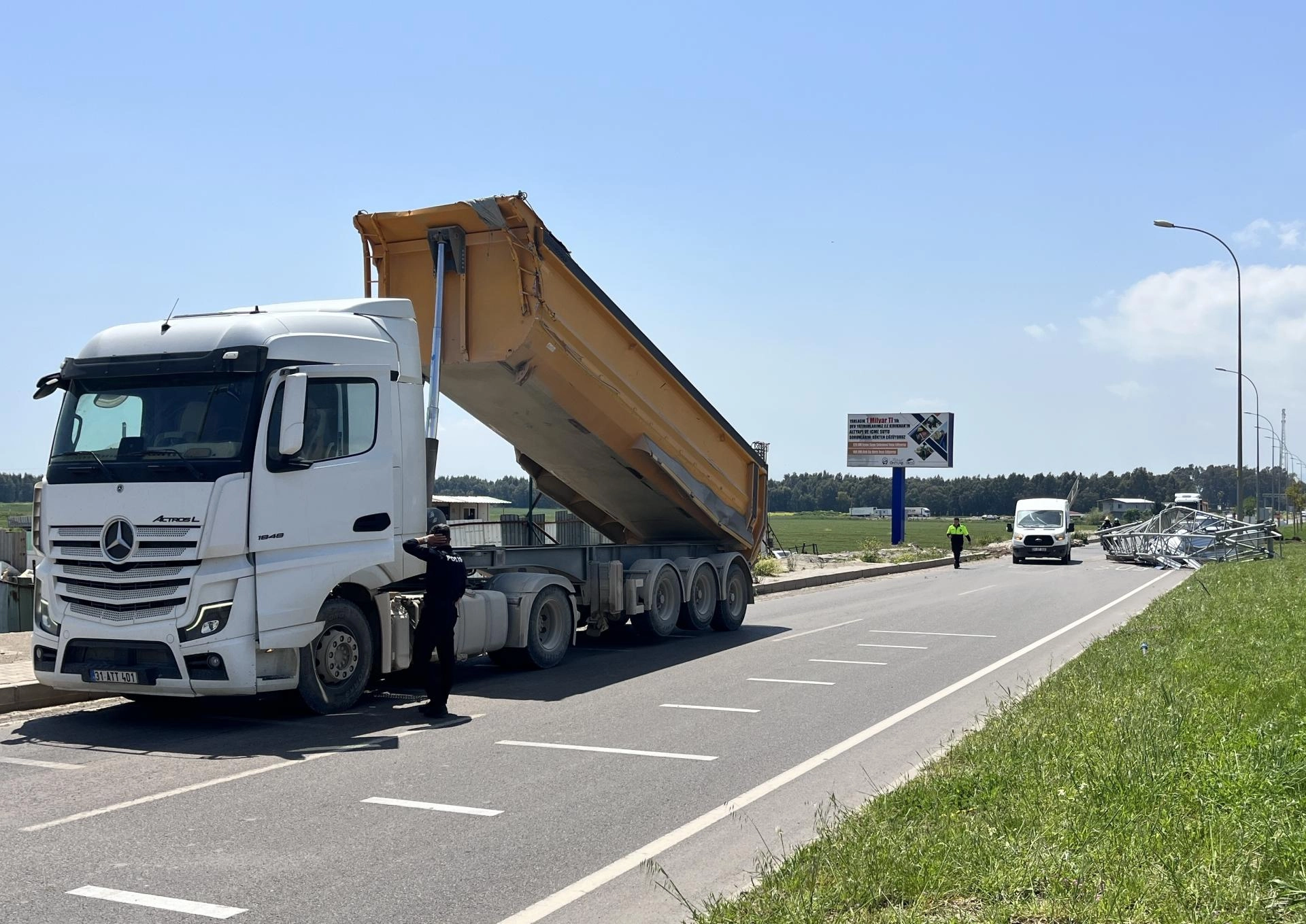Özyörük Mahallesi'nde, Hasan G. idaresindeki 31 ATT 401 plakalı kamyonun damperi açık kaldı.