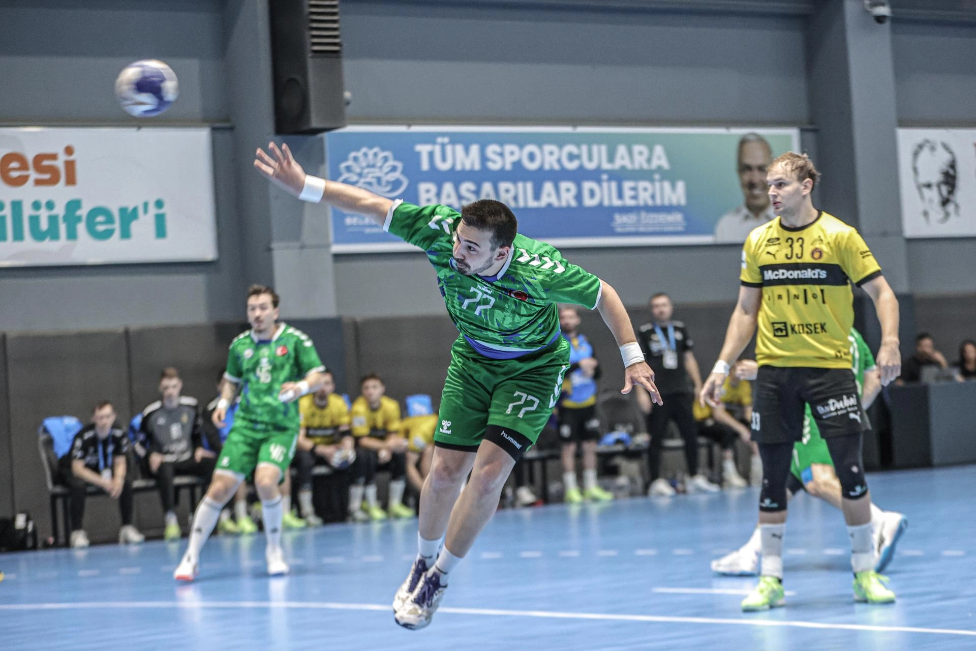 Nilüfer Belediyespor, son 16 turunda deplasmanda 29-26 yenildiği ilk maçın rövanşında, Çekya temsilcisi SKKP Hentbol'u konuk etti. Üçevler Spor Salonu'nda yapılan ve ilk yarısını 16-16 berabere kapattığı maçı ev sahibi ekip, 32-28 kazandı.