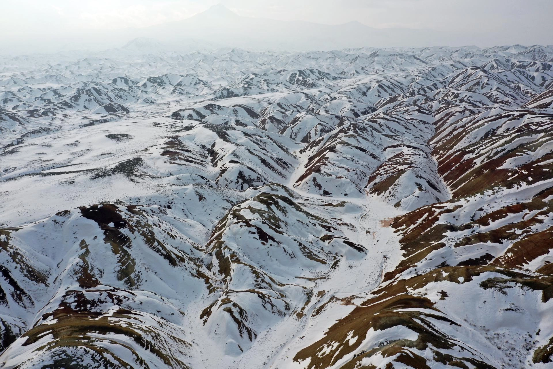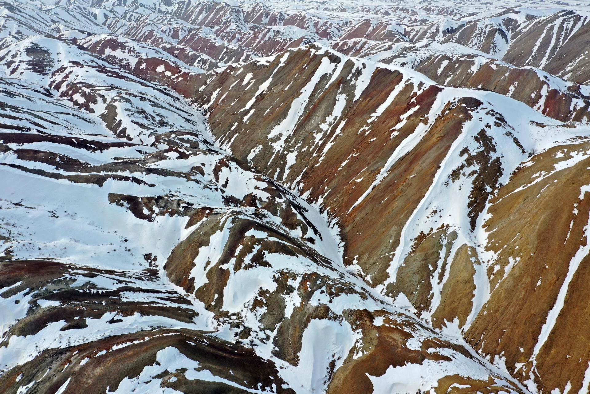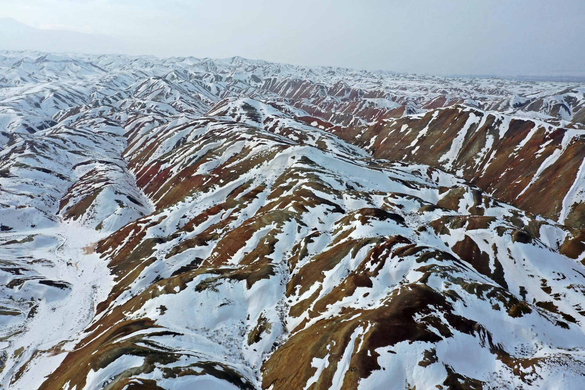 IĞDIR (AA) - Iğdır'daki Gökkuşağı Tepeleri, bölgede etkili olan karın ardından beyaza büründü.