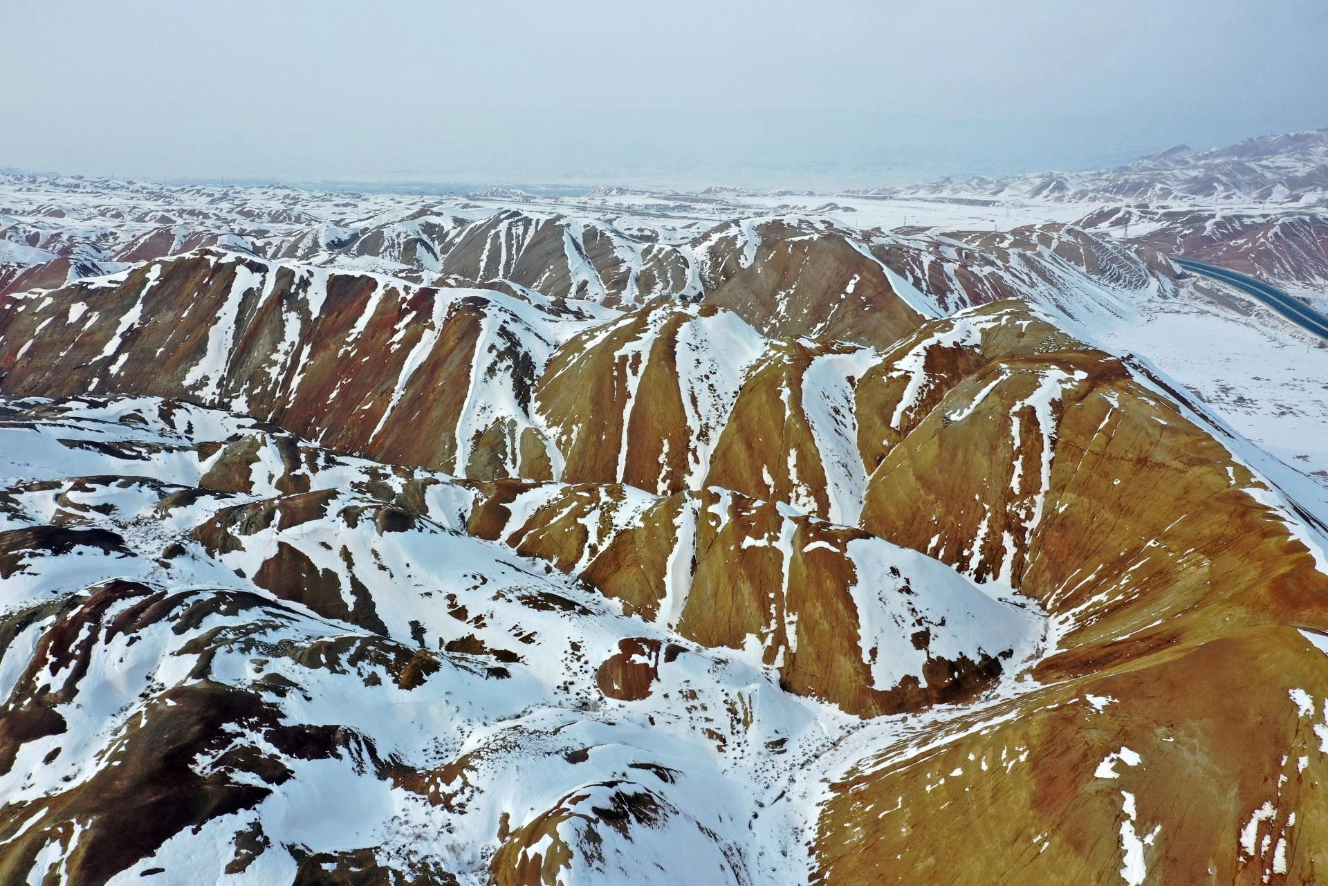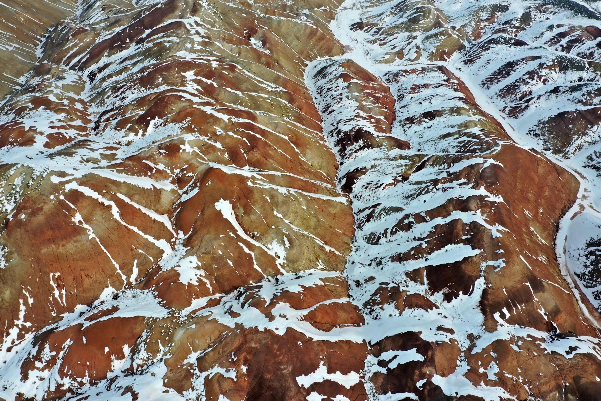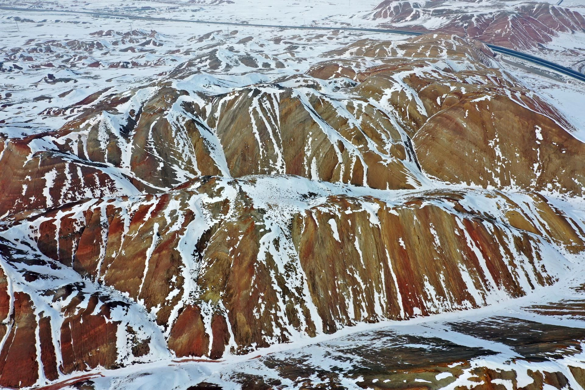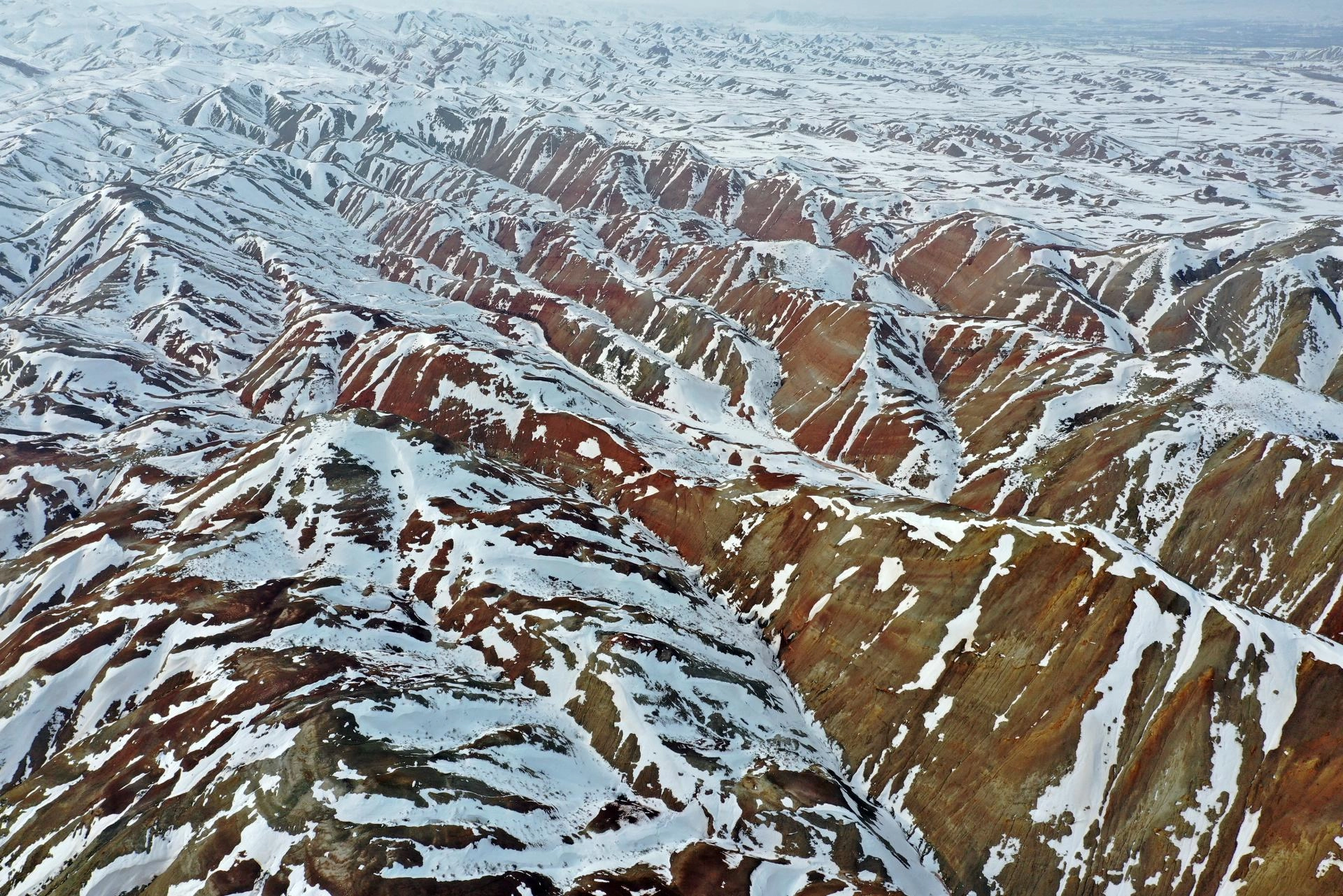 IĞDIR (AA) - Iğdır'daki Gökkuşağı Tepeleri, bölgede etkili olan karın ardından beyaza büründü.