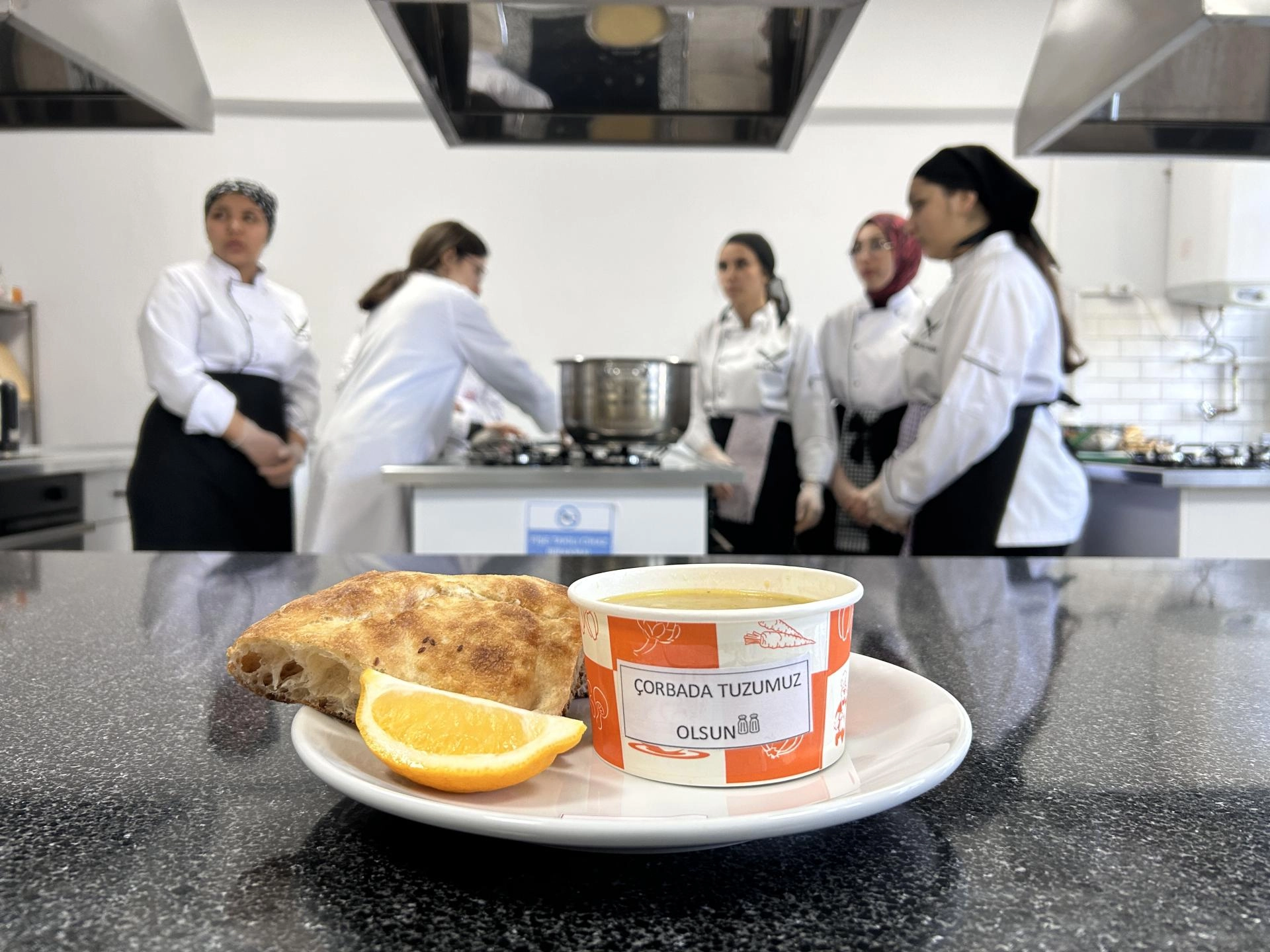 Öğrenciler, bu kapsamda okulun Yiyecek İçecek Hizmetleri Bölümü'nün mutfağında hazırladıkları çorbayı, pideyle birlikte, ilçedeki yaşlıların evine götürüyor.