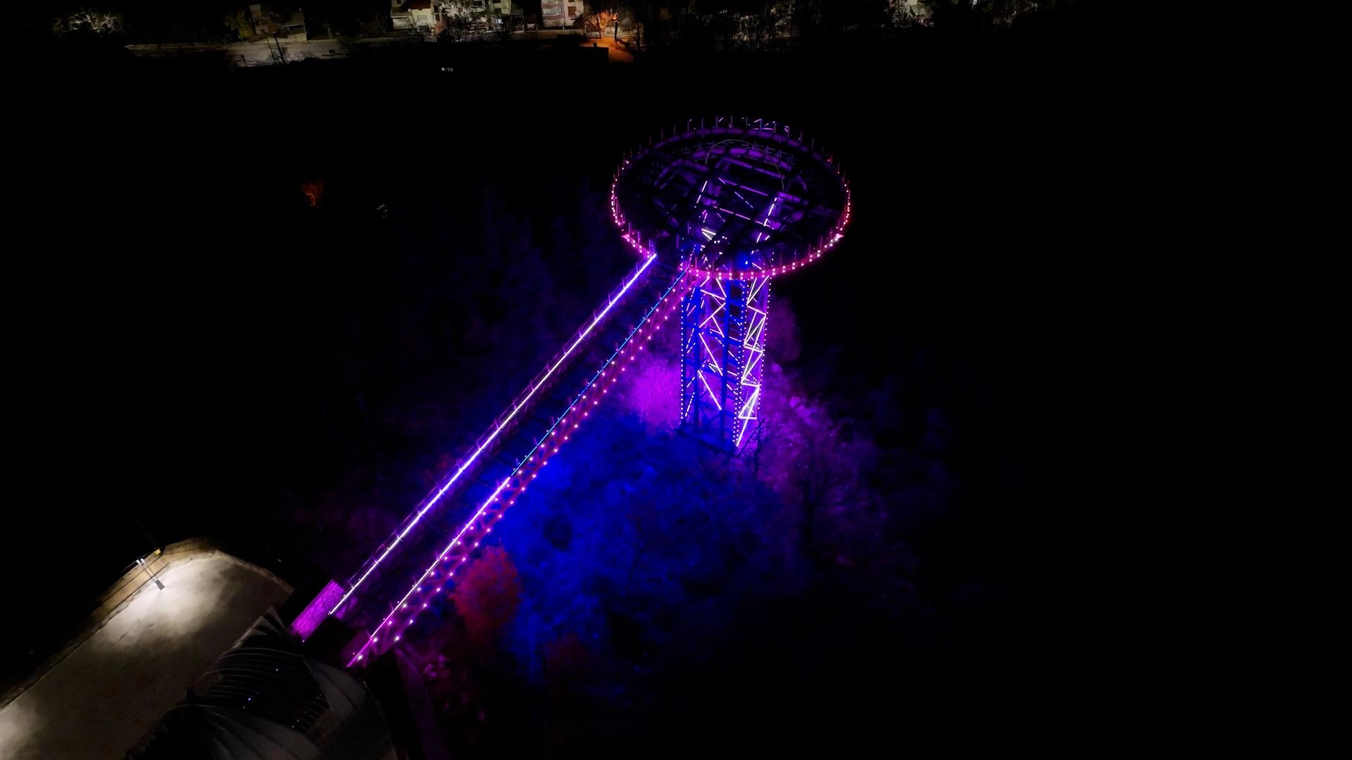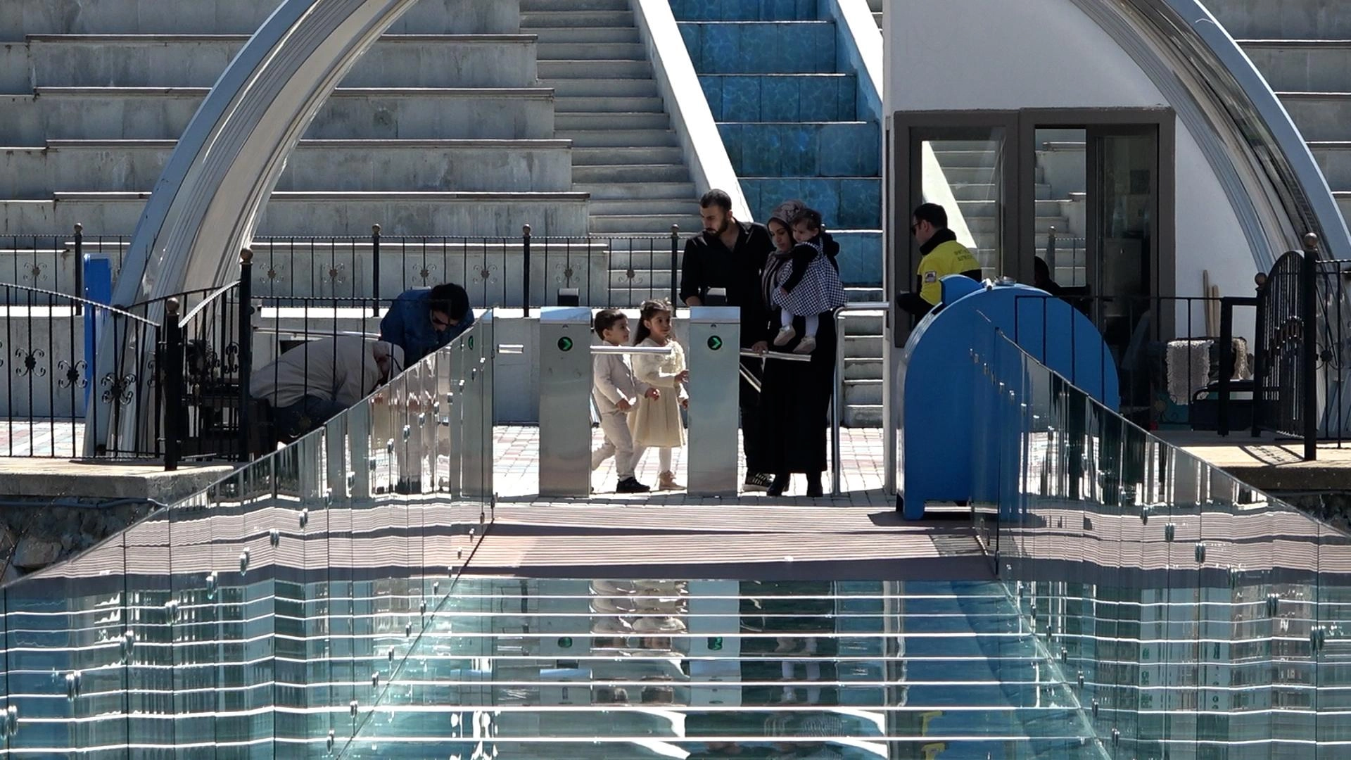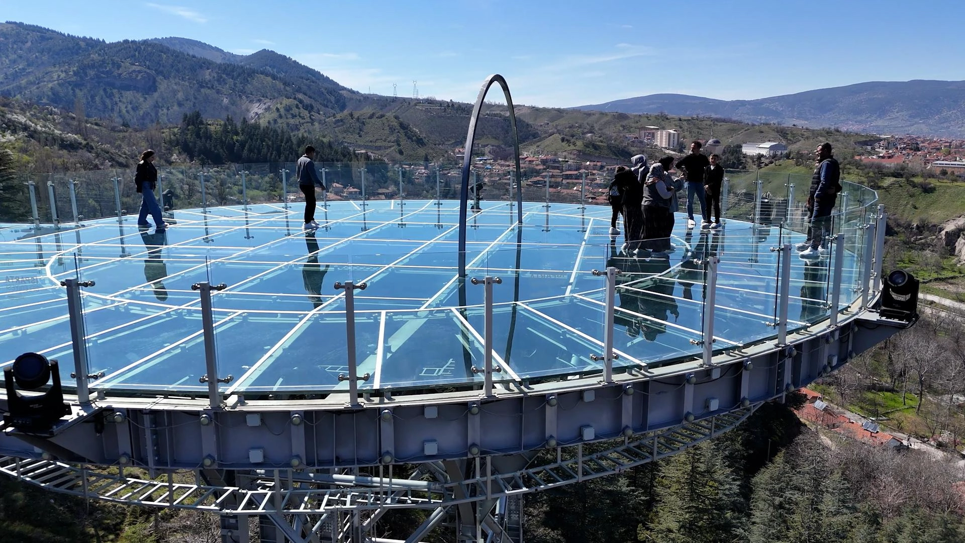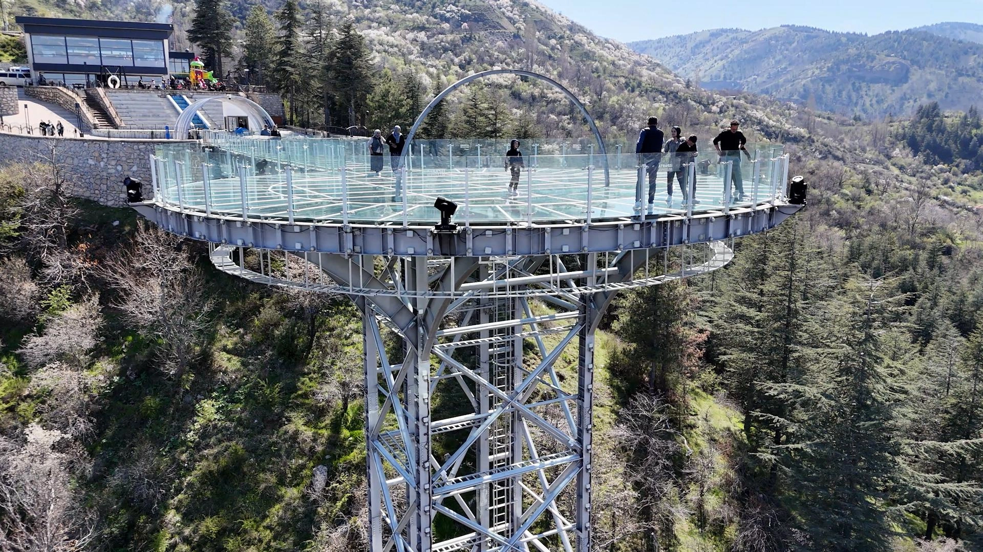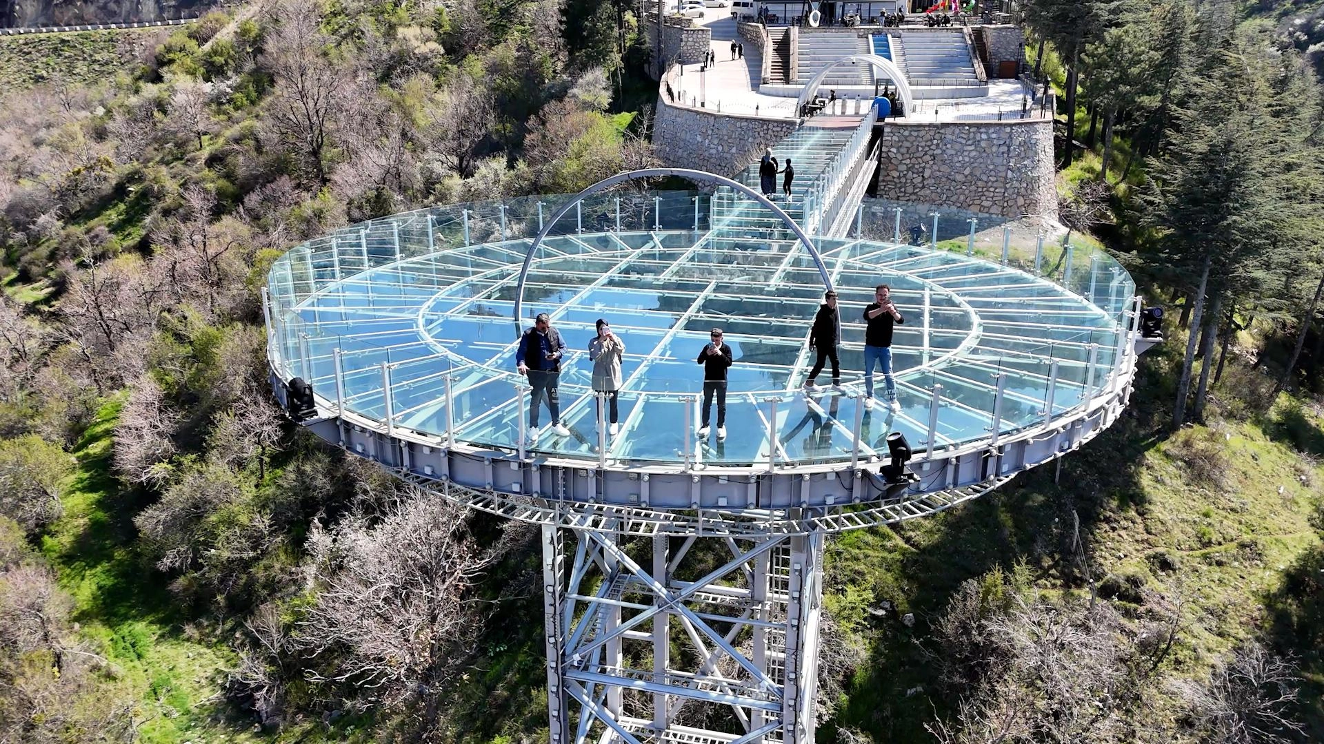 Yaklaşık 100 metrekarelik alana sahip cam seyir terası, özellikle gece saatlerinde yapılan ışıklandırmasıyla ziyaretçilerin ilgisini çekiyor.