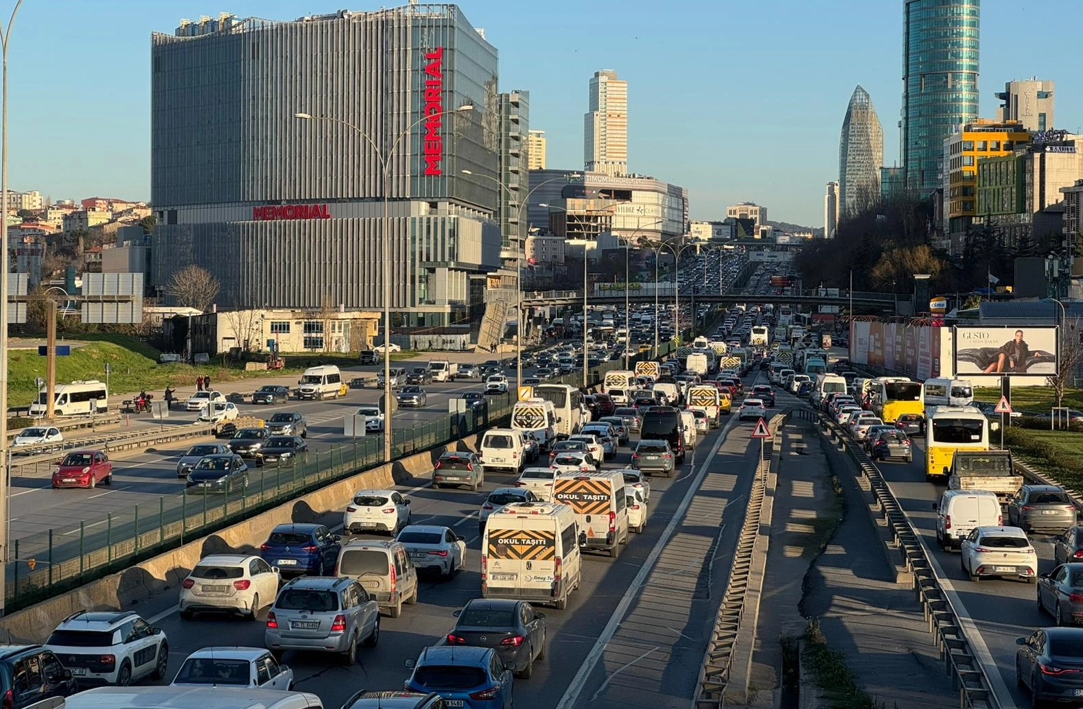 Avrupa Yakası'nda D-100 kara yolunda Şişli ve 15 Temmuz Şehitler Köprüsü arasında her iki istikamette araçlar güçlükle ilerliyor.
