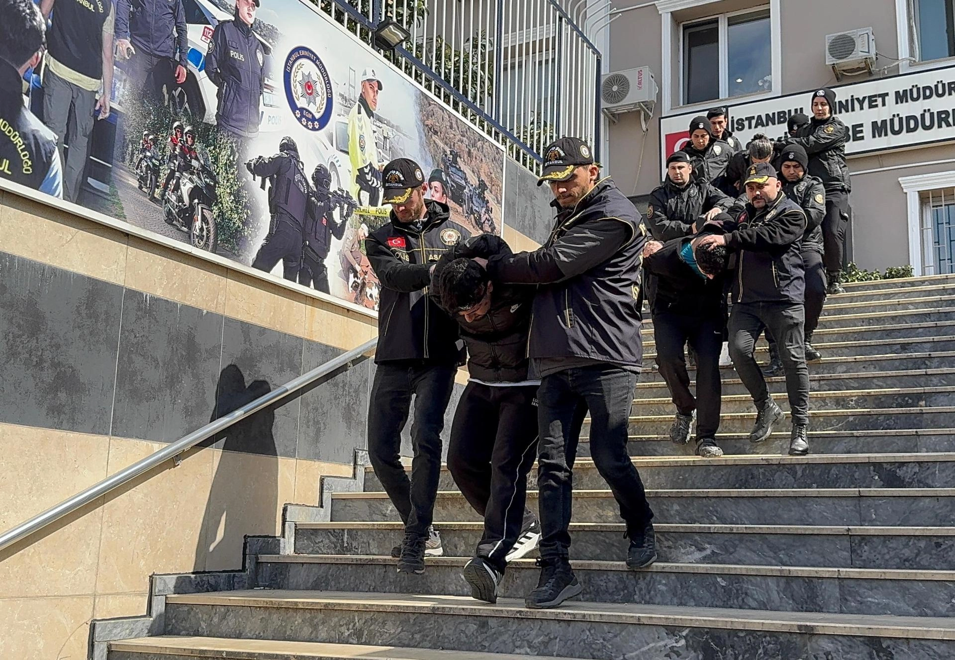 İstanbul'da Kuyumcukent'ten uzun namlulu silahlarla yapılan soyguna ilişkin yakalanan 8 şüpheli adliyede