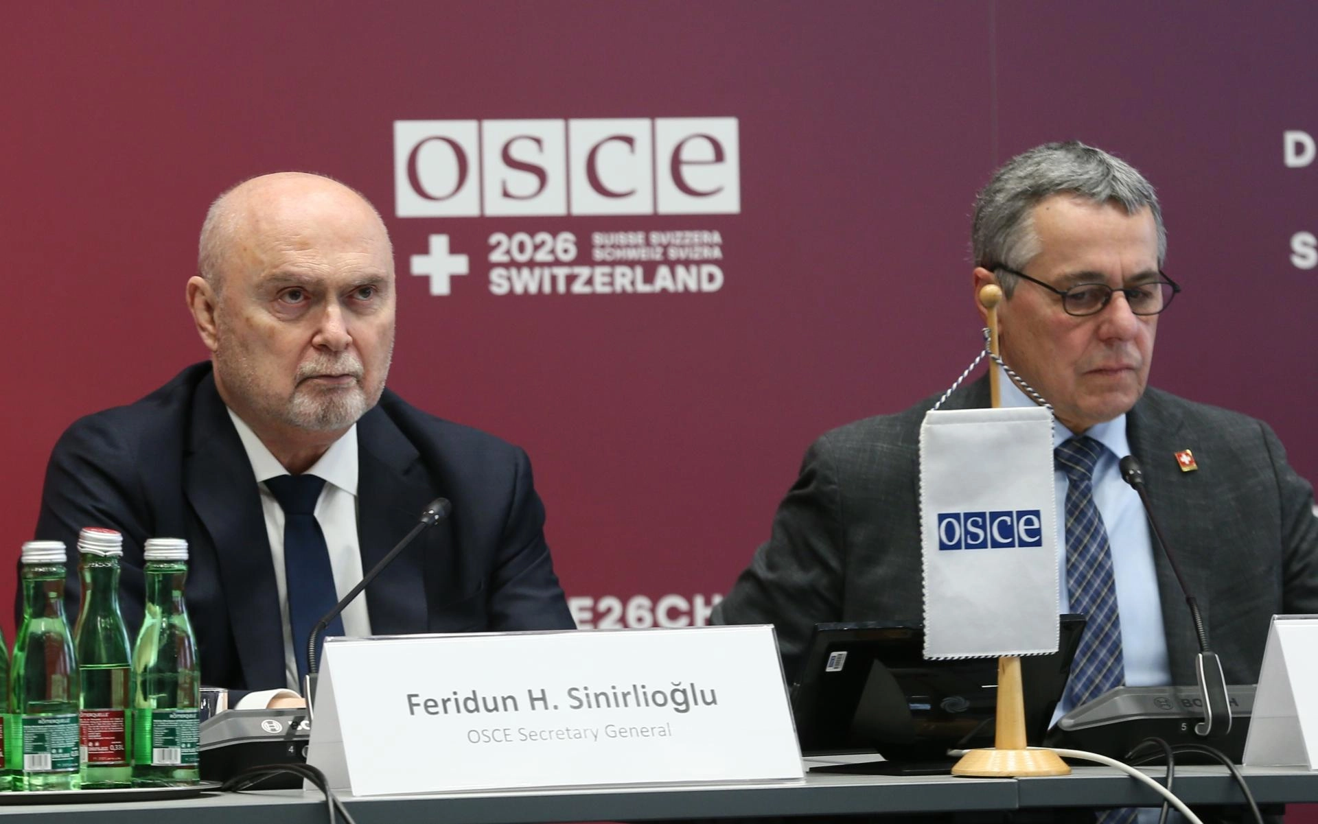 AGİT Genel Sekreteri Feridun Sinirlioğlu ve 2026 dönem başkanlığını devralan İsviçre'nin Dışişleri Bakanı Cassis, teşkilatın merkezi Viyana'da ortak basın toplantısı düzenledi.