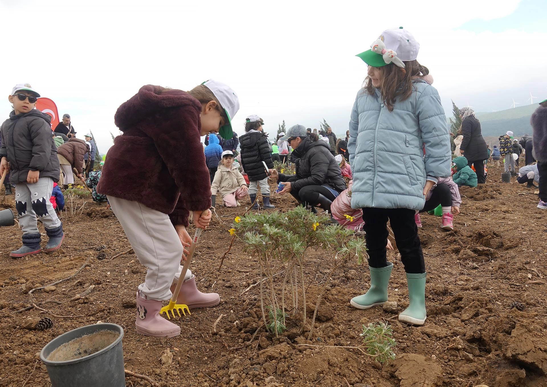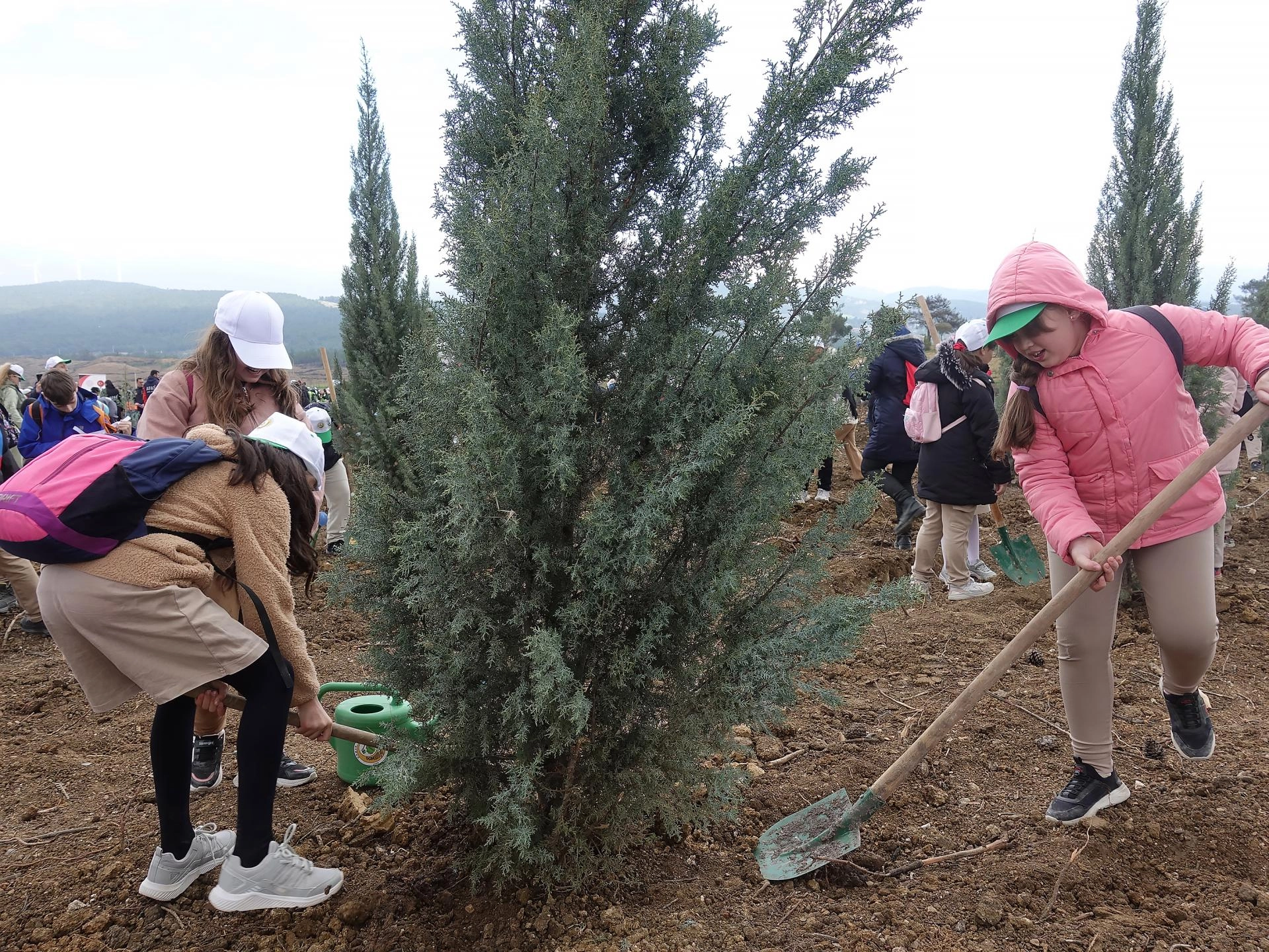 Yapılan duanın ardından, protokol üyeleri ve katılımcılar tarafından alanda 15 bin fıstıkçamı ve mavi servinin dikimi gerçekleştirildi.