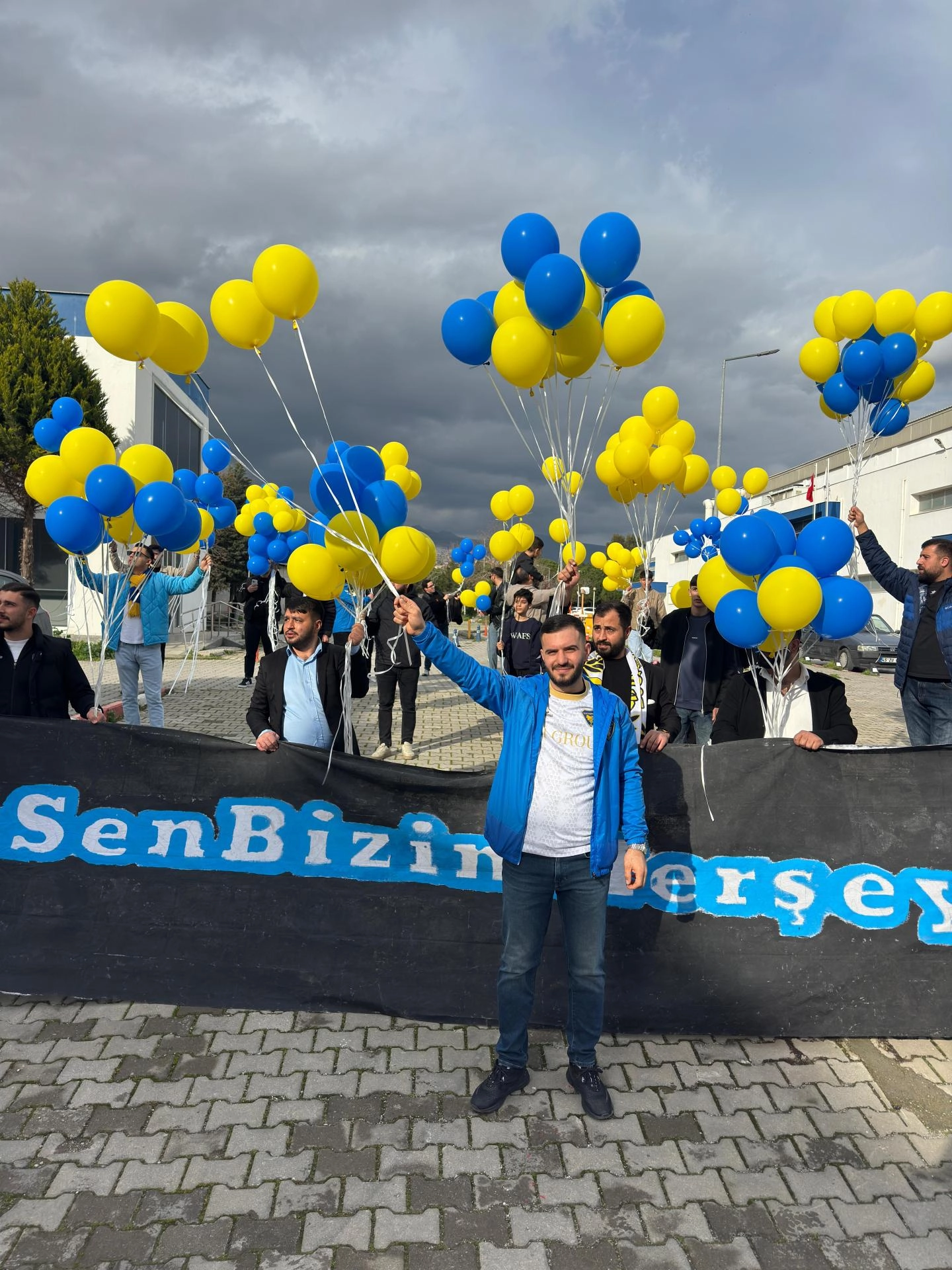 Üzerinde "Afra sen bizim her şeyimizsin" yazan pankart açan taraftarlar "Geçmiş olsun Afra", sloğanları eşliğinde balonları gökyüzüne bıraktı.