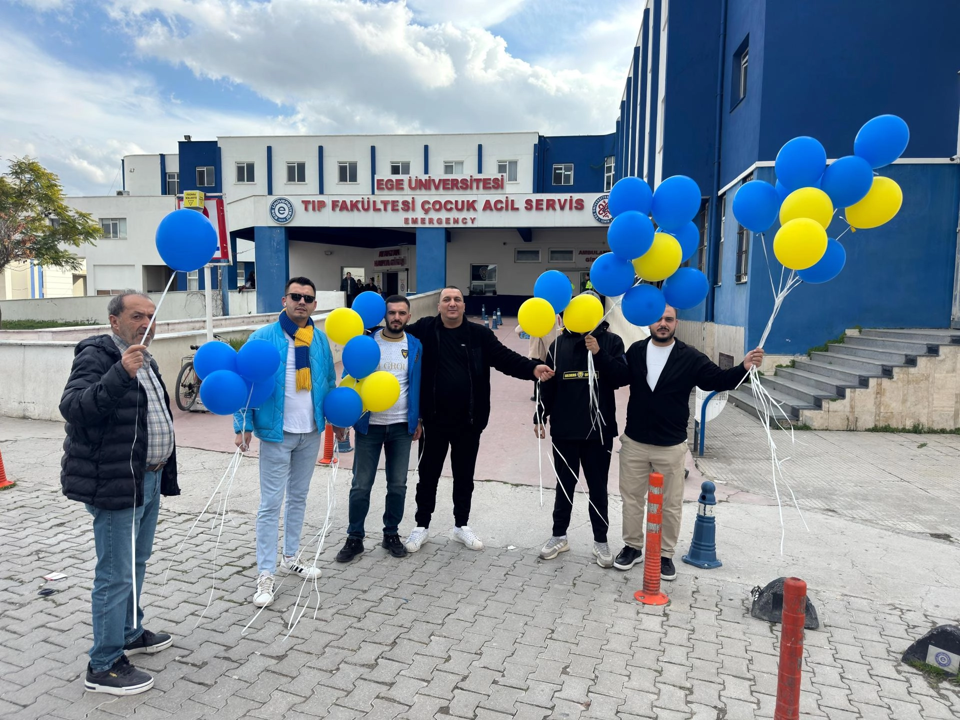 Ellerinde Bucasporun renklerini taşıyan sarı ve lacivart balonlar taşıyan Tekmanlı'nın ailesi ve taraftarlar, Afra'nın tedavi gördüğü odanın baktığı alana geldi.