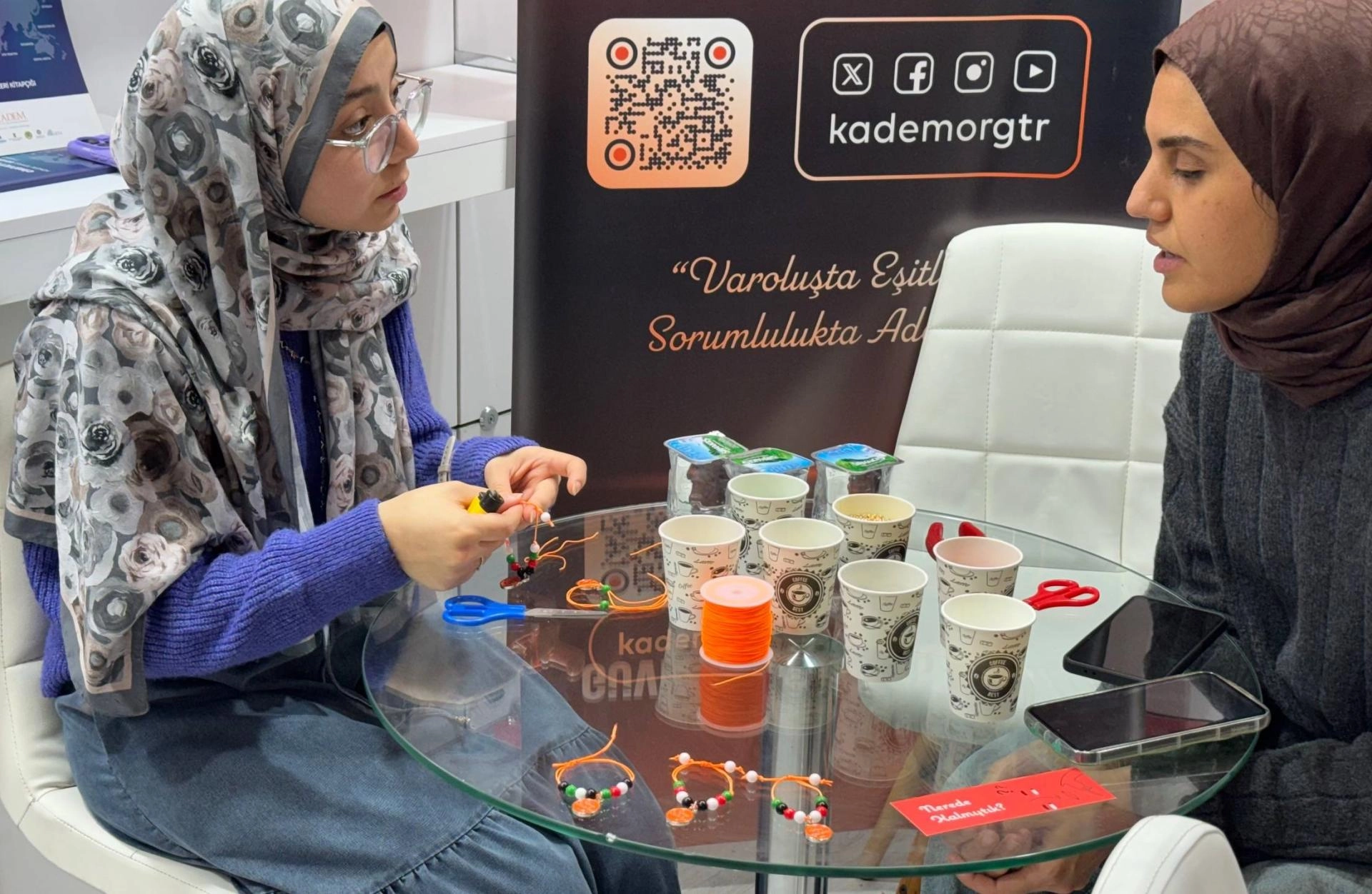Etkinlik kapsamında Genç KADEM gönüllülerince yapılan bileklikler, KADEM Yayınlarının standına gelen ziyaretçilere hediye edildi.