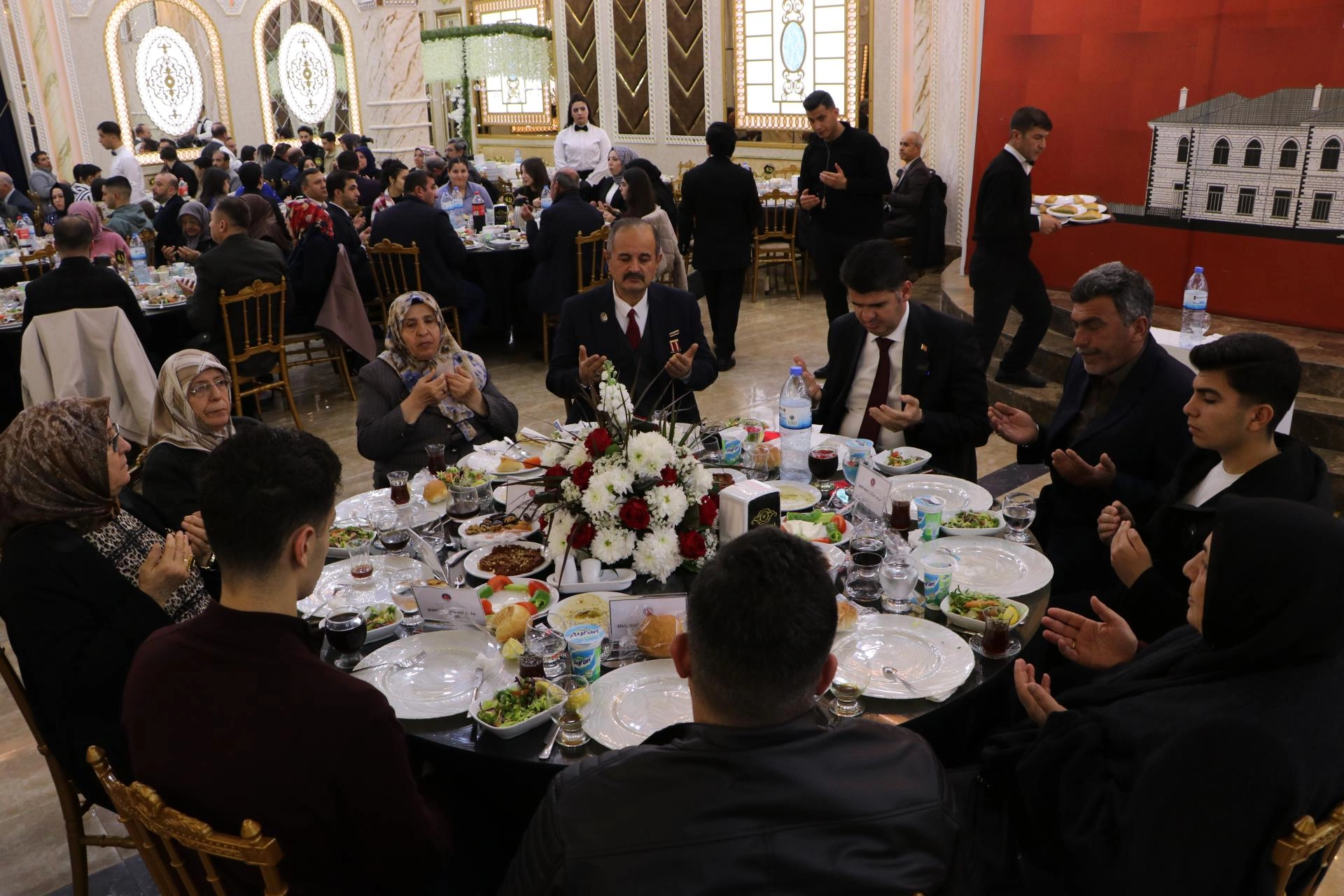 Kahramanmaraş'ta bir düğün salonunda düzenlenen iftar öncesinde, Vali Mükerrem Ünlüer ile eşi Selma Ünlüer şehit aileleri ve gazilerle sohbet etti.