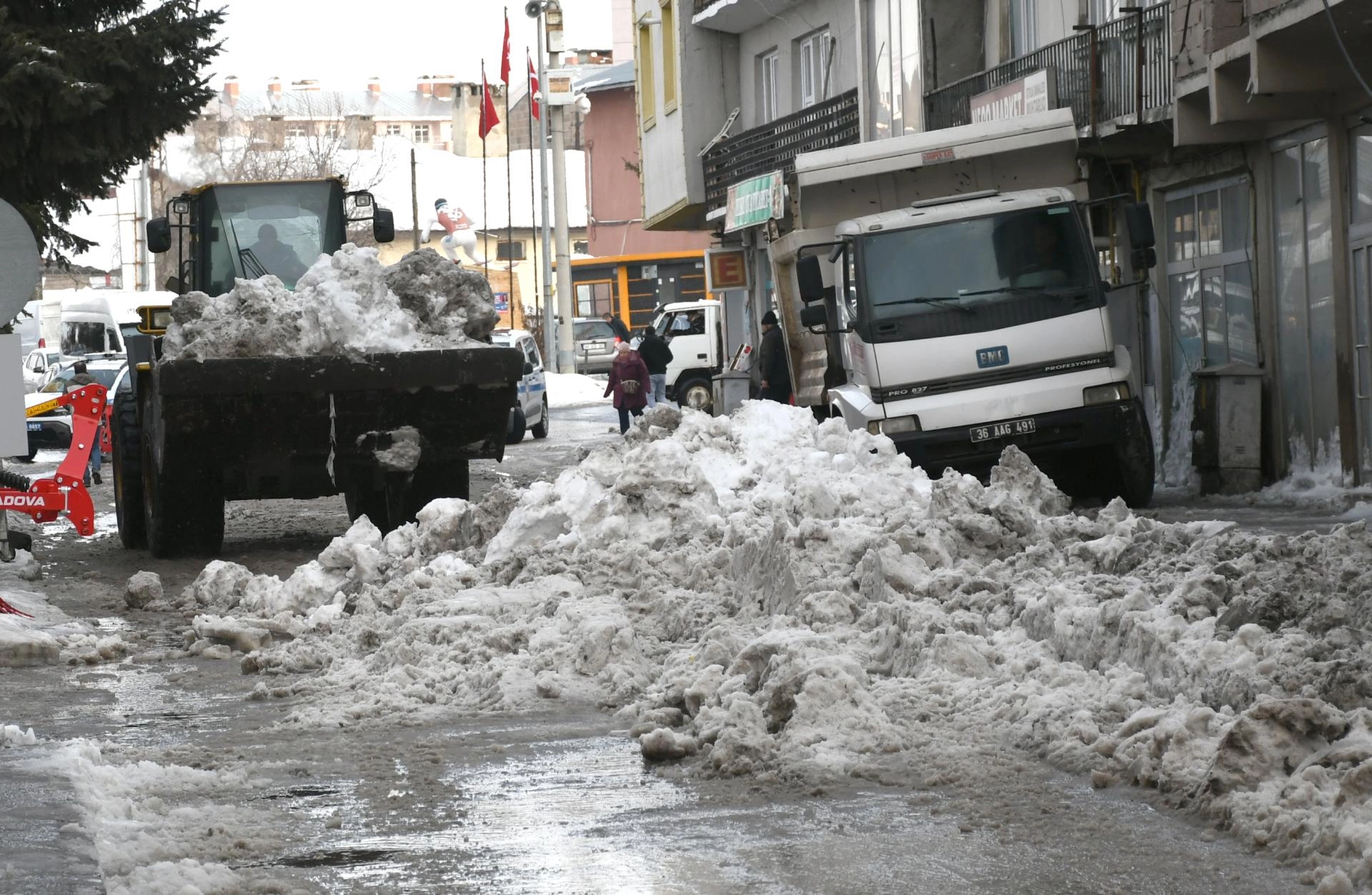 Kar kalınlığının 1 metreyi aştığı Sarıkamış'ta biriken kar şehir dışına taşınıyor