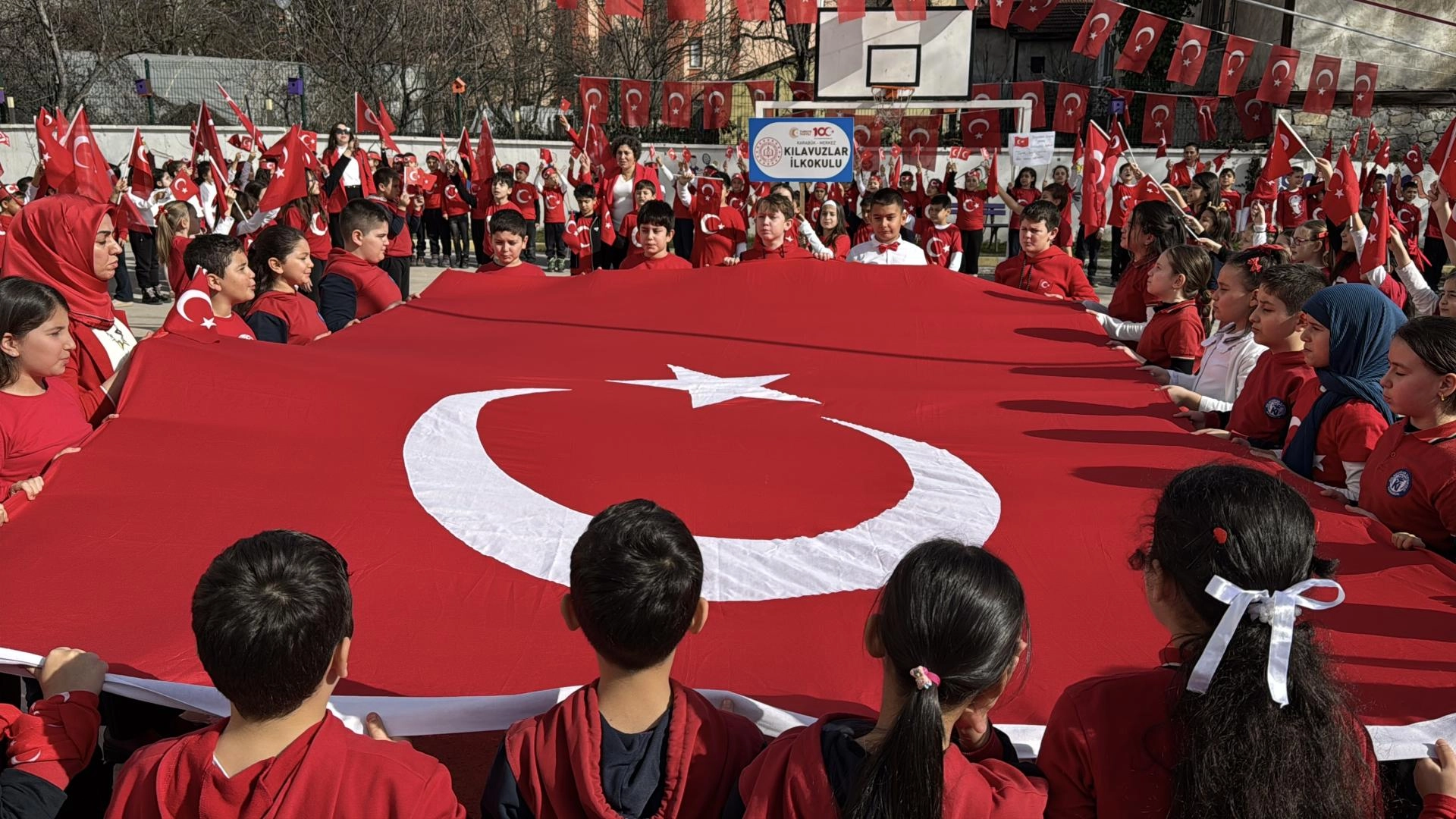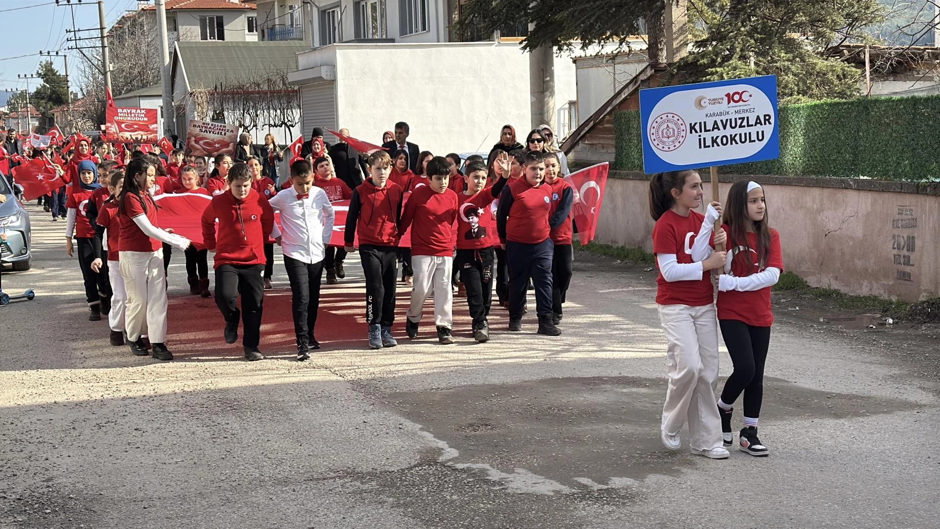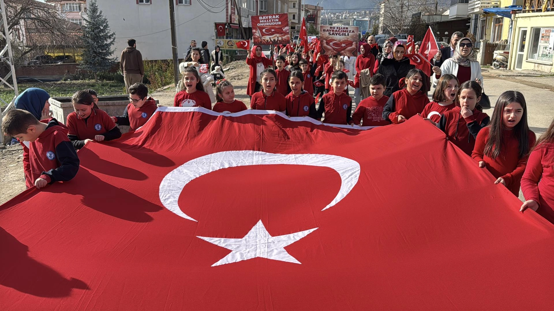 Okul bahçesinde toplanan 326 öğrenci, ellerinde Türk bayraklarıyla ve pankartlarla Kılavuzlar Mahallesi'nde yürüdü. Okul bahçesinde sona eren yürüyüşün ardından İstiklal Marşı okundu.