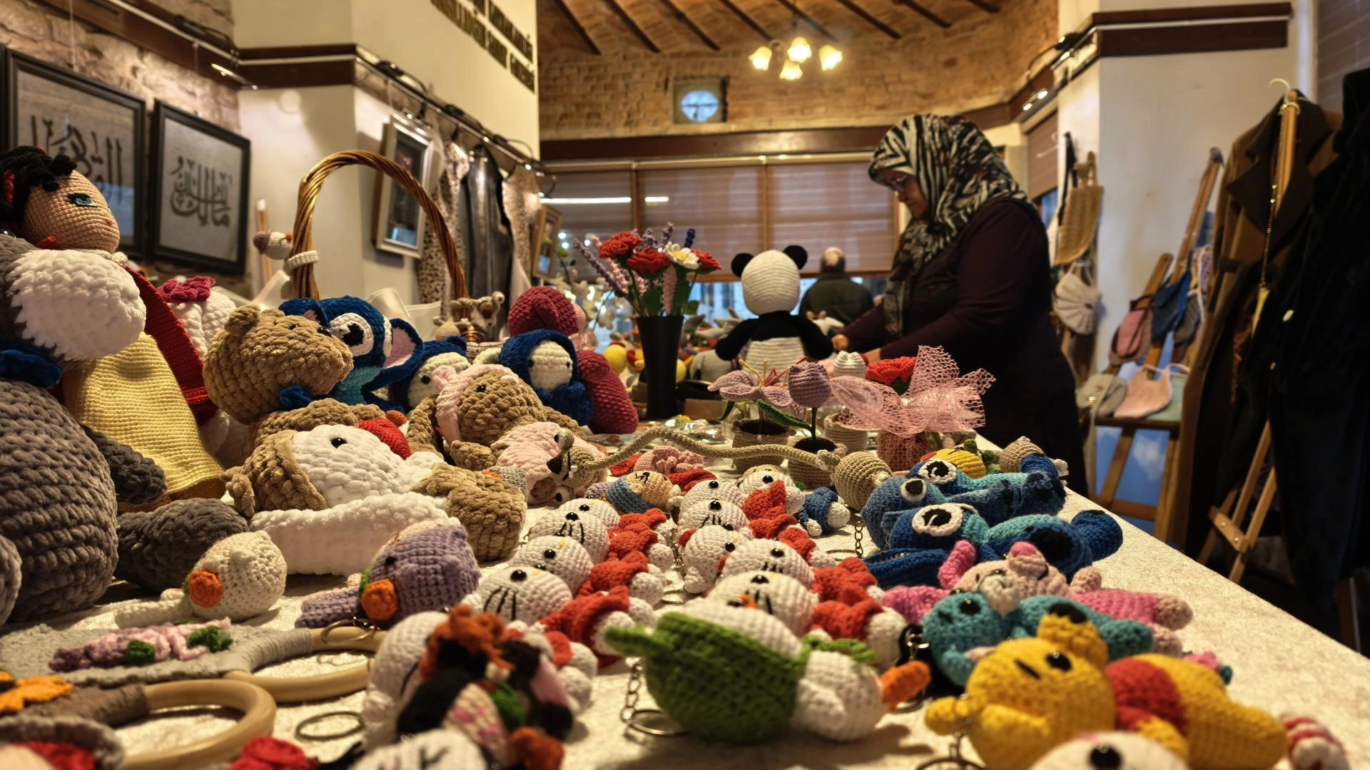 Örgü, takı, tablo gibi çeşitli ürünlerini sergileyen KADEM gönüllüsü Fatma Karadeniz ise KADEM'de hem öğrenerek hem de öğreterek güzel ürünler ortaya çıkardıklarını kaydetti.