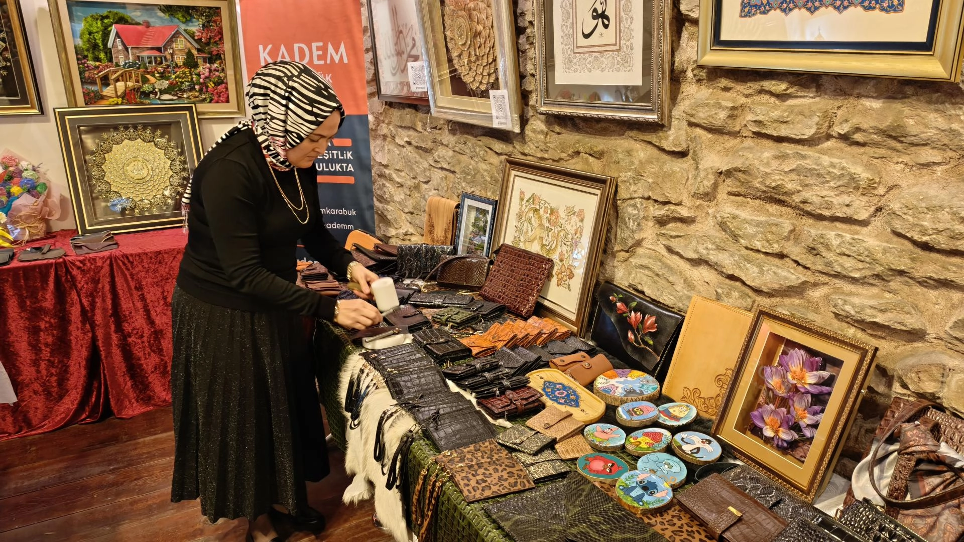 Kadın ve Demokrasi Vakfı (KADEM) İl Temsilciliğince yürütülen proje kapsamında eğitimlerin ardından hazırlanan el emeği ürünler, Safranbolu Cıngıllıoğlu Sanat Galerisi'nde izlenime sunuldu.