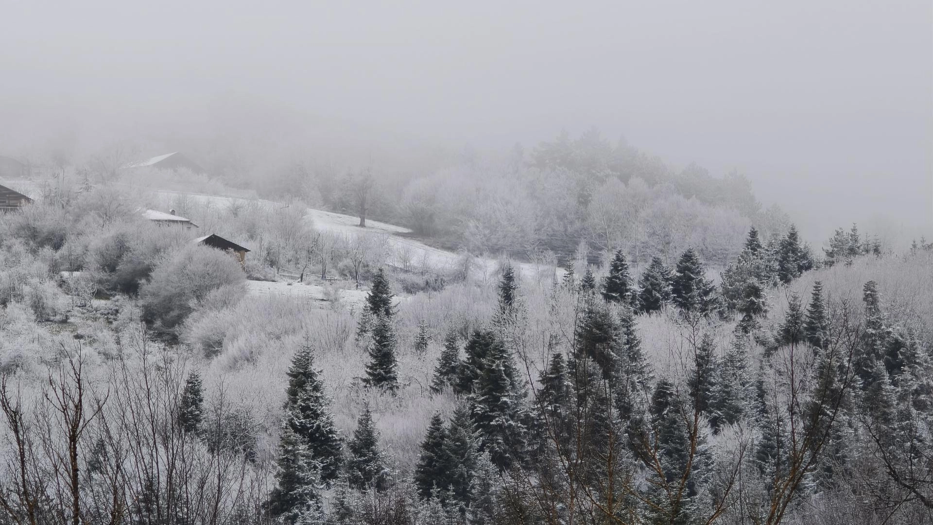 Safranbolu'nun Sarıçiçek Yaylası, Ömür Ahmet Kıran mevkisi ile Karabük-Bartın kara yolunun 1030 rakımlı Ahmetusta Geçidi'nde kar yağışı ve sis etkisini sürdürüyor.