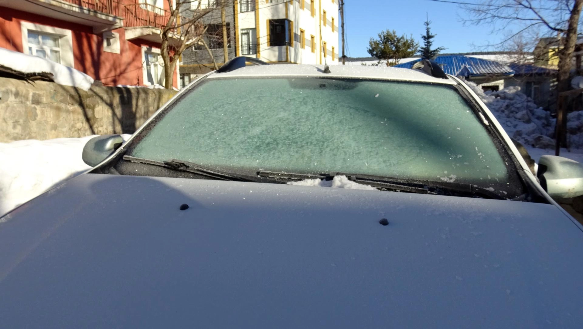 Sarıkamış ilçesinde ise bina çatılarında buz sarkıtları oluştu. Araç camlarının buz tuttuğu ilçede, derelerin yüzeyi dondu.