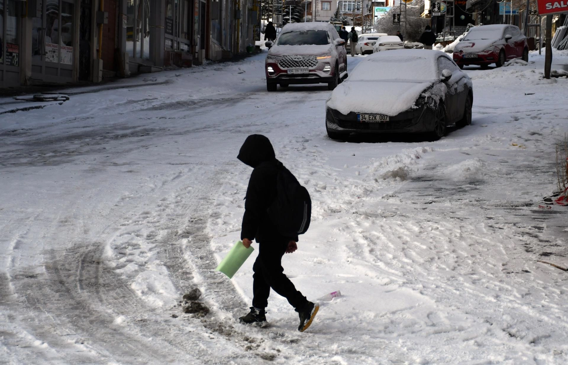 Kars'ta gece saatlerinde etkili olan kar yağışı, sabah yerini soğuk havaya bıraktı.