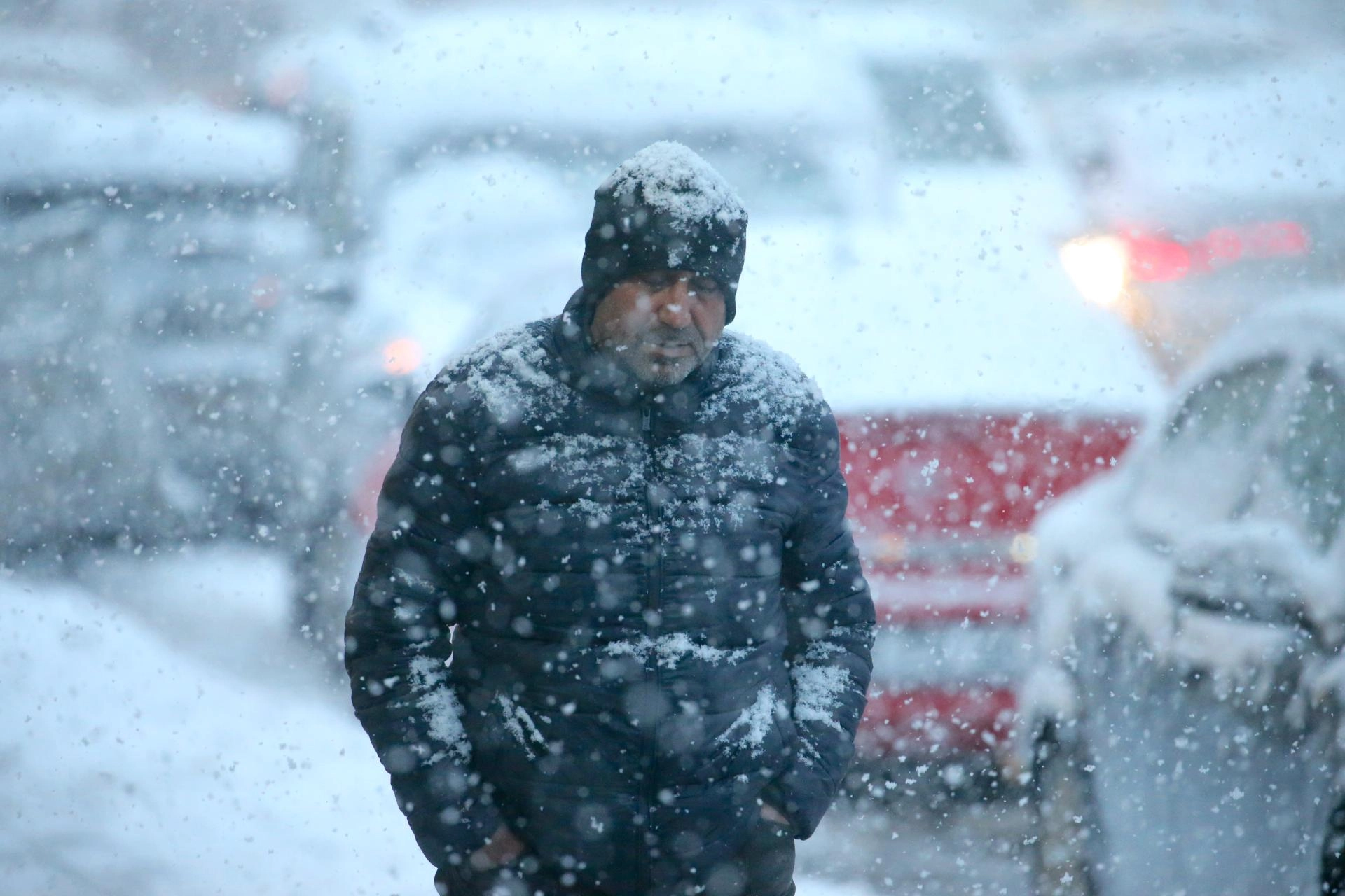 Kar yağışı nedeniyle görüş mesafesi azaldı, sürücüler ilerlemekte güçlük çekti.
