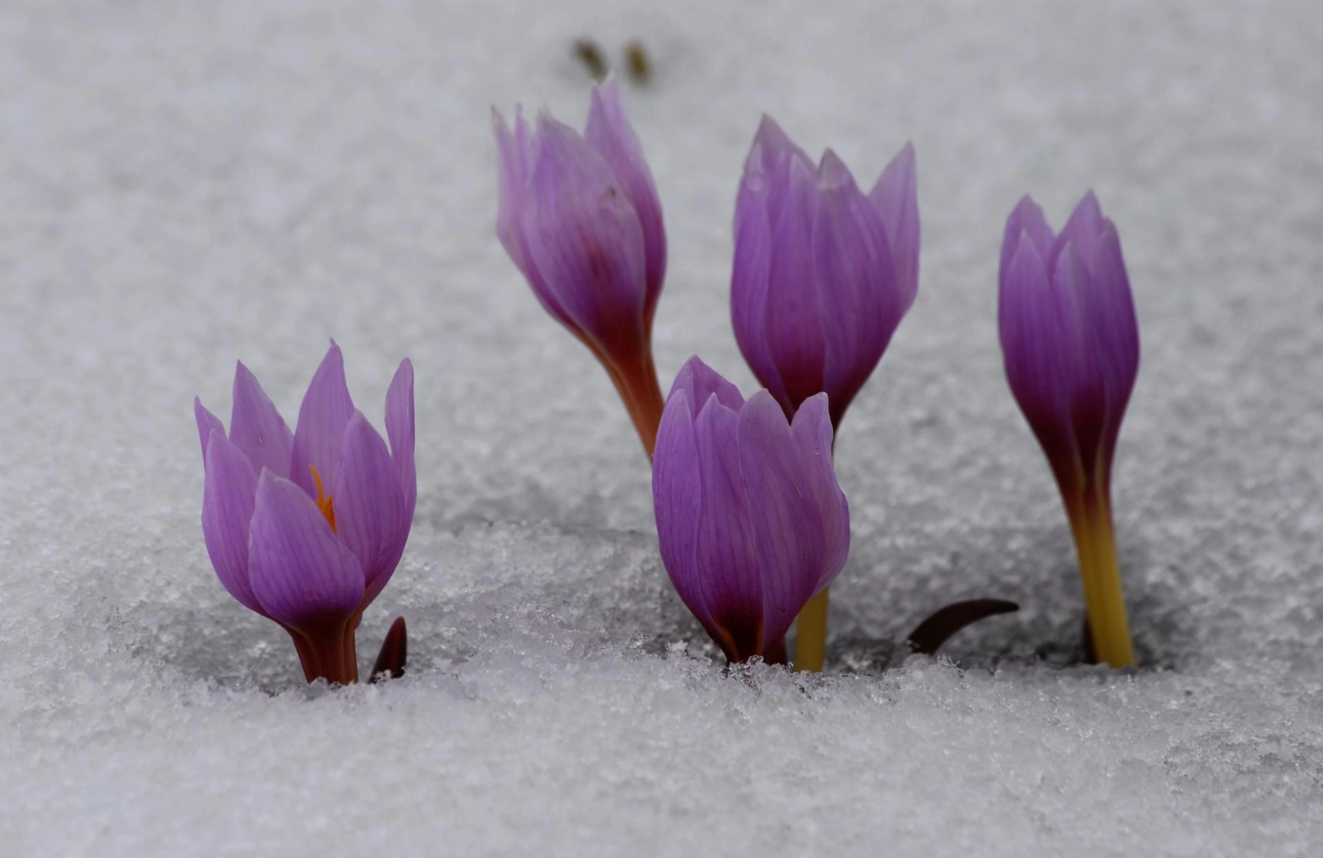 Baharın müjdecisi olarak bilinen kardelen, çiğdem ve farklı türlerdeki çiçekler kar altında kaldı.
