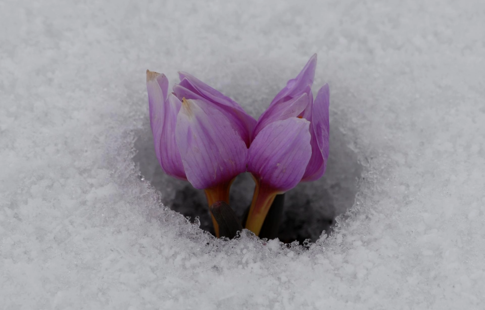 Sarıkamış ilçesinde de karla kaplanan doğada açan çiçekler görüntülendi.
