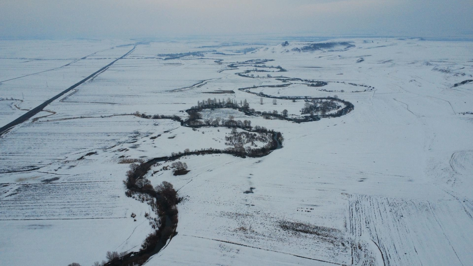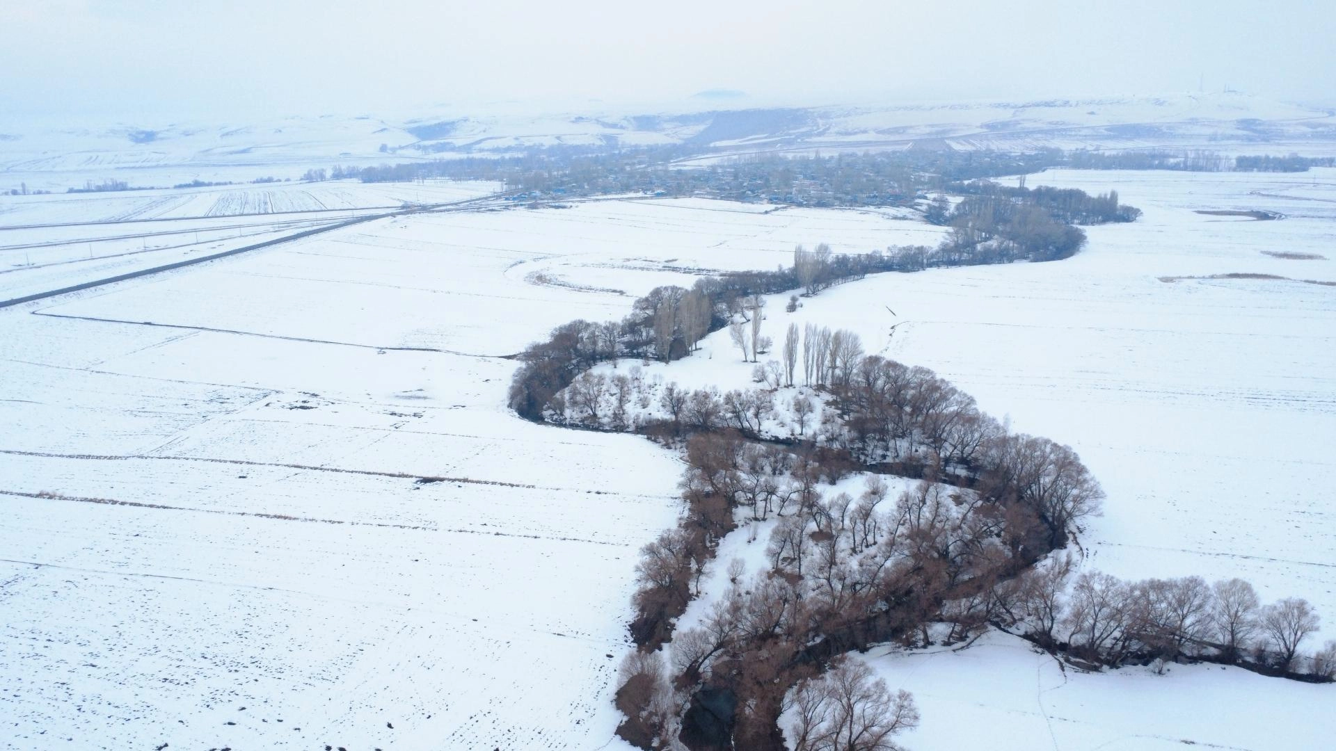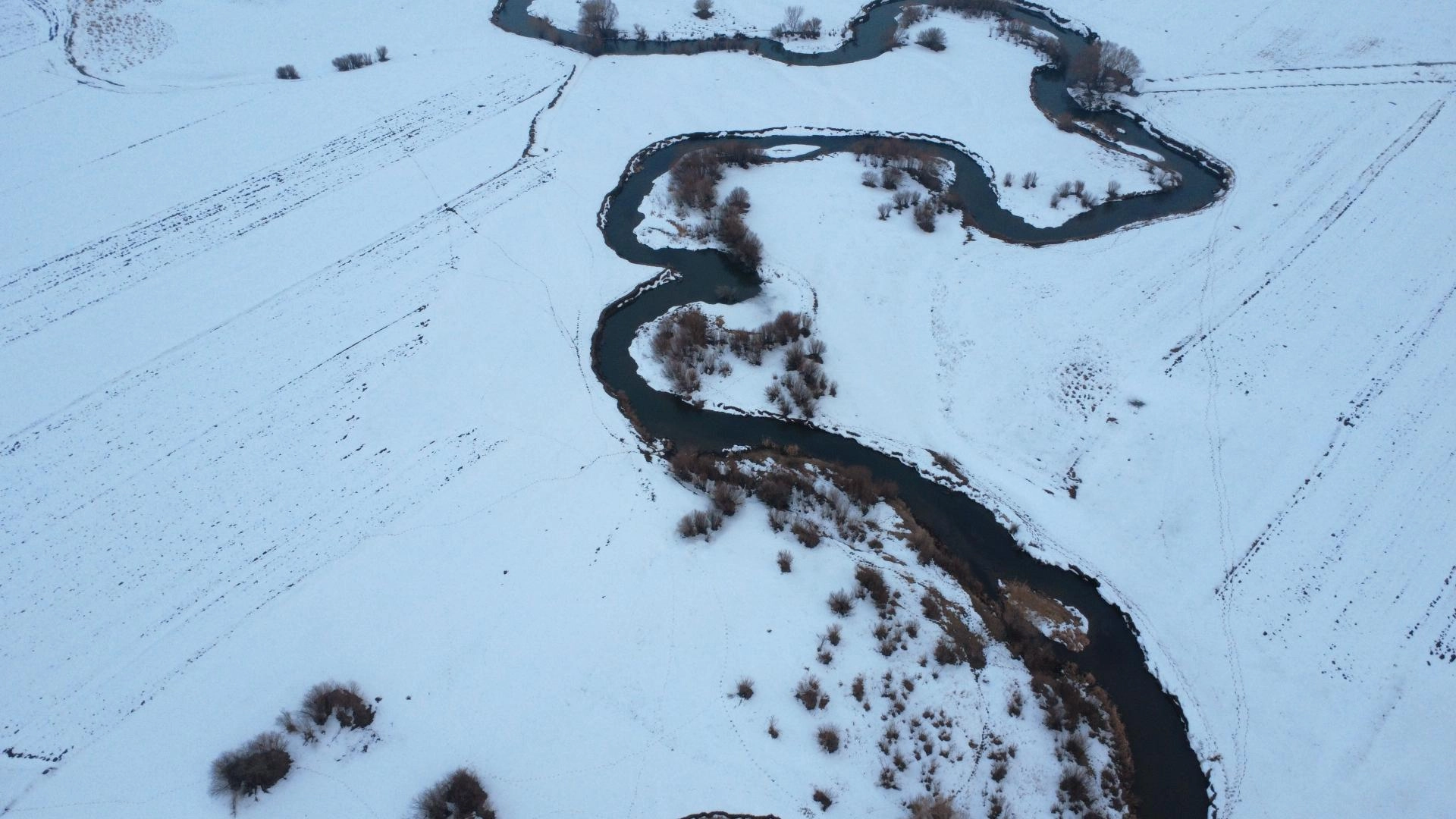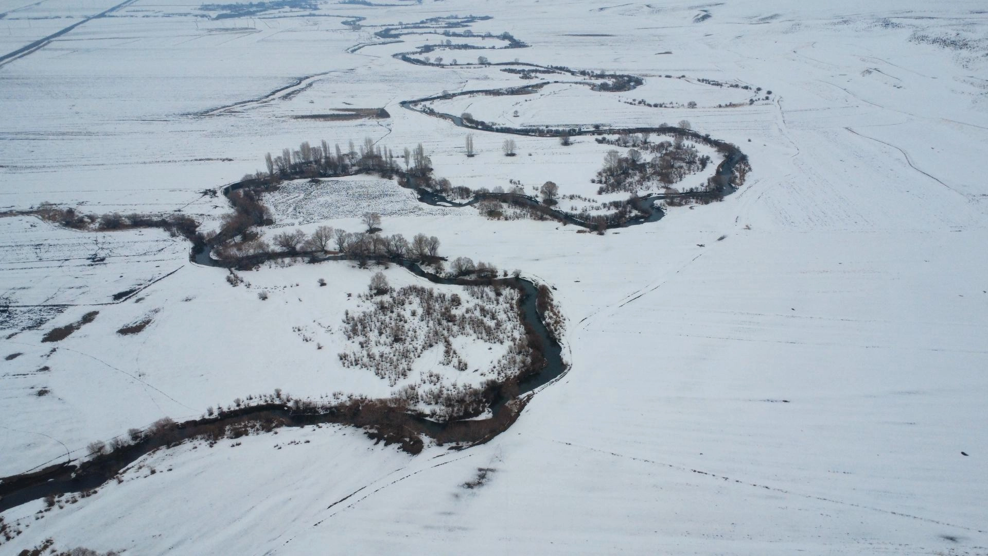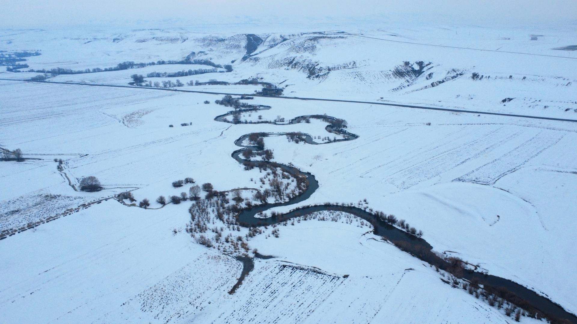 Yazın tarım ile hayvancılığa can suyu olan menderesler, kışın da karla kaplı haliyle güzel manzaralar oluşturdu.