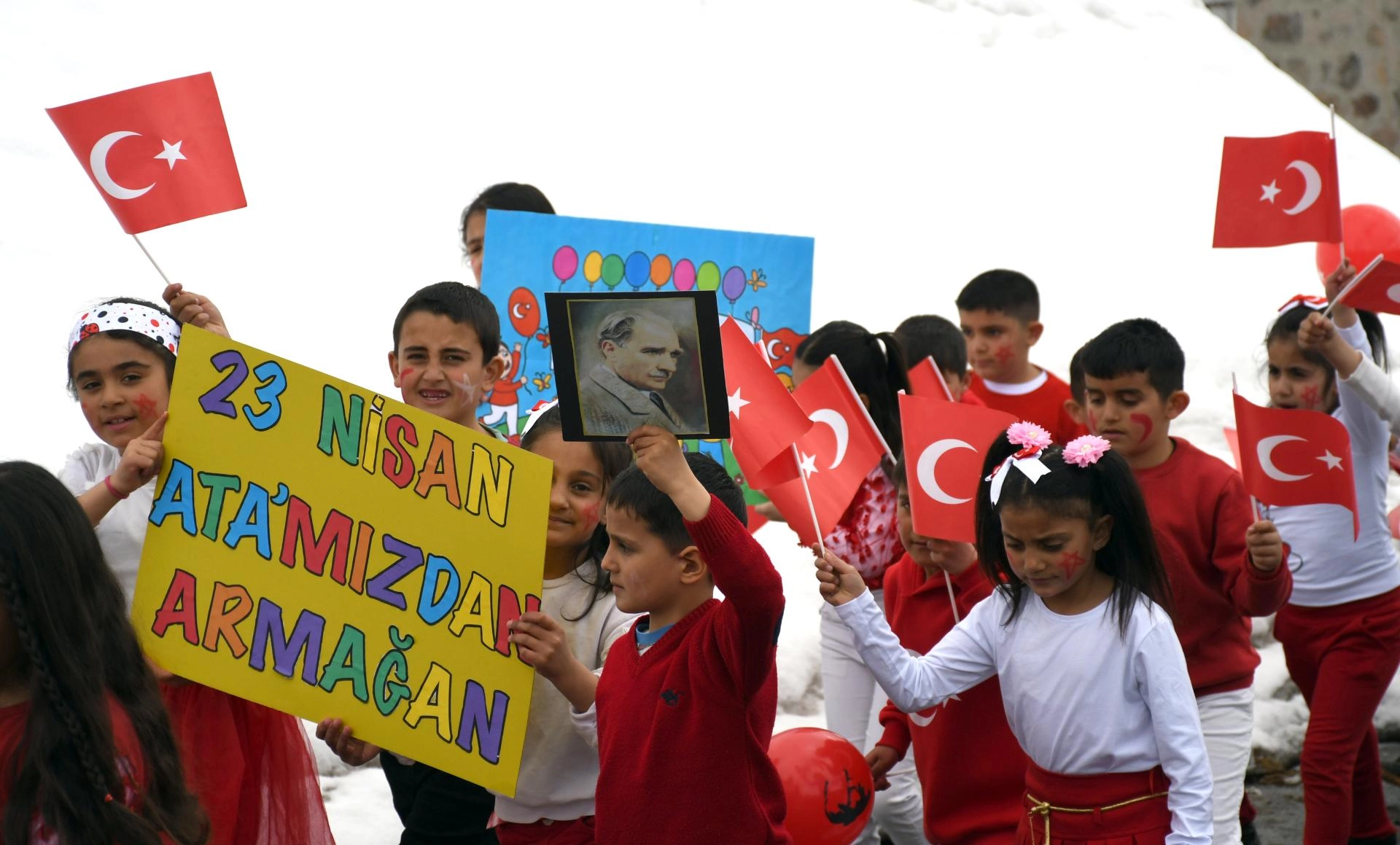 KARS (AA) - Kars'ın Sarıkamış ilçesi Hamamlı İlkokulu'nda öğrenim gören öğrenciler, 23 Nisan Ulusal Egemenlik ve Çocuk Bayramı'nı düzenledikleri sessiz yürüyüşle kutladı.