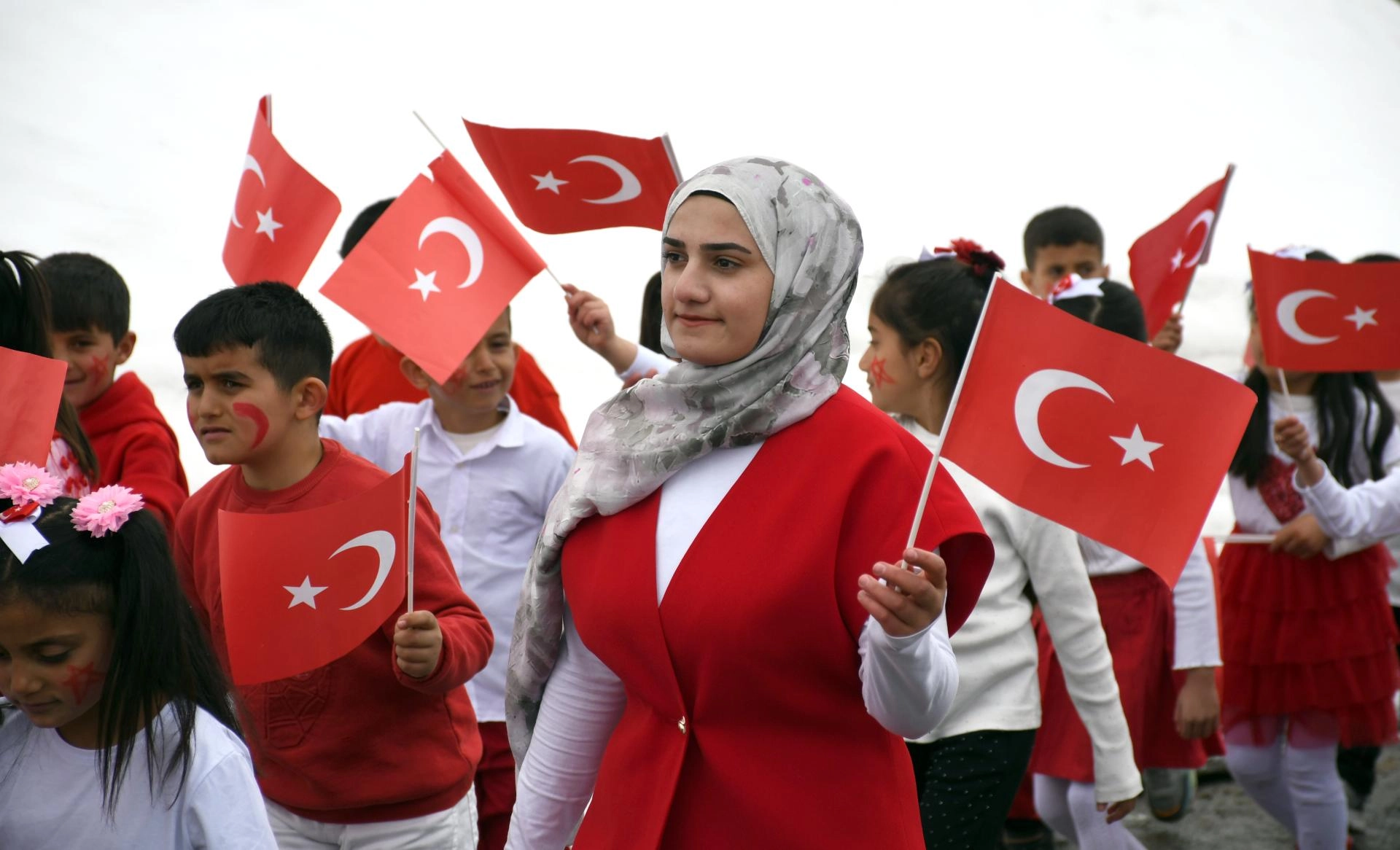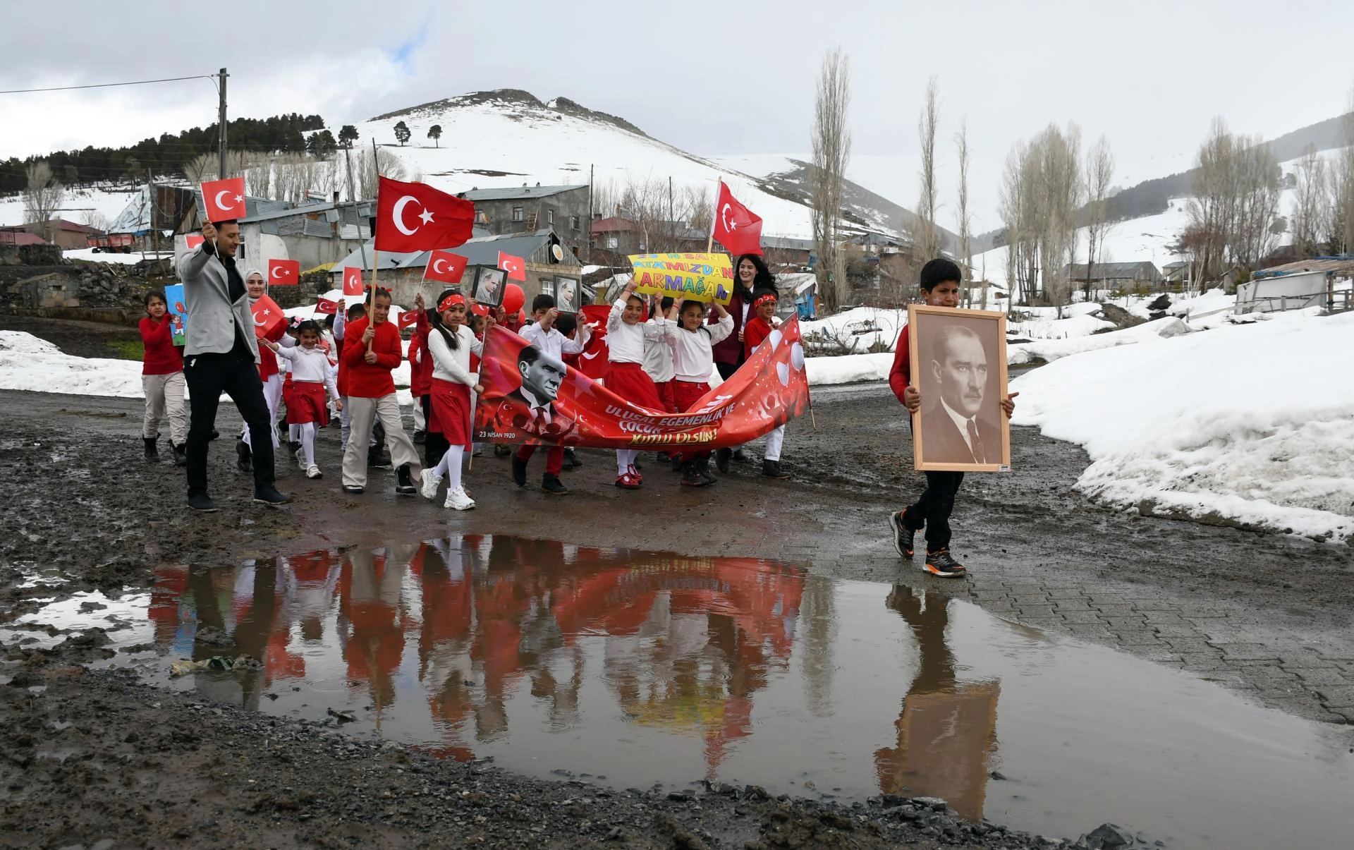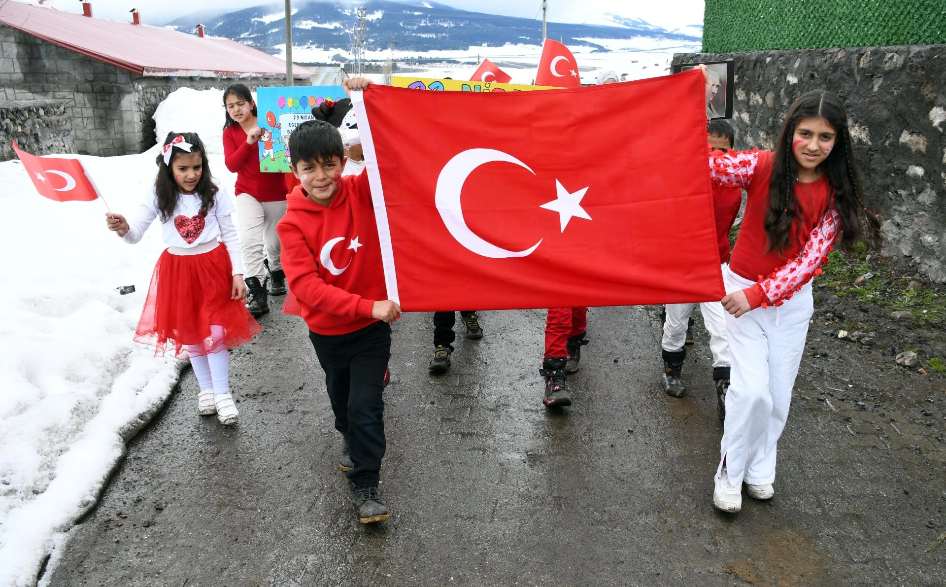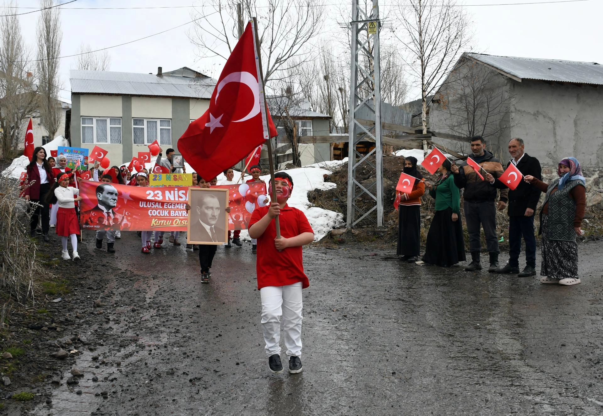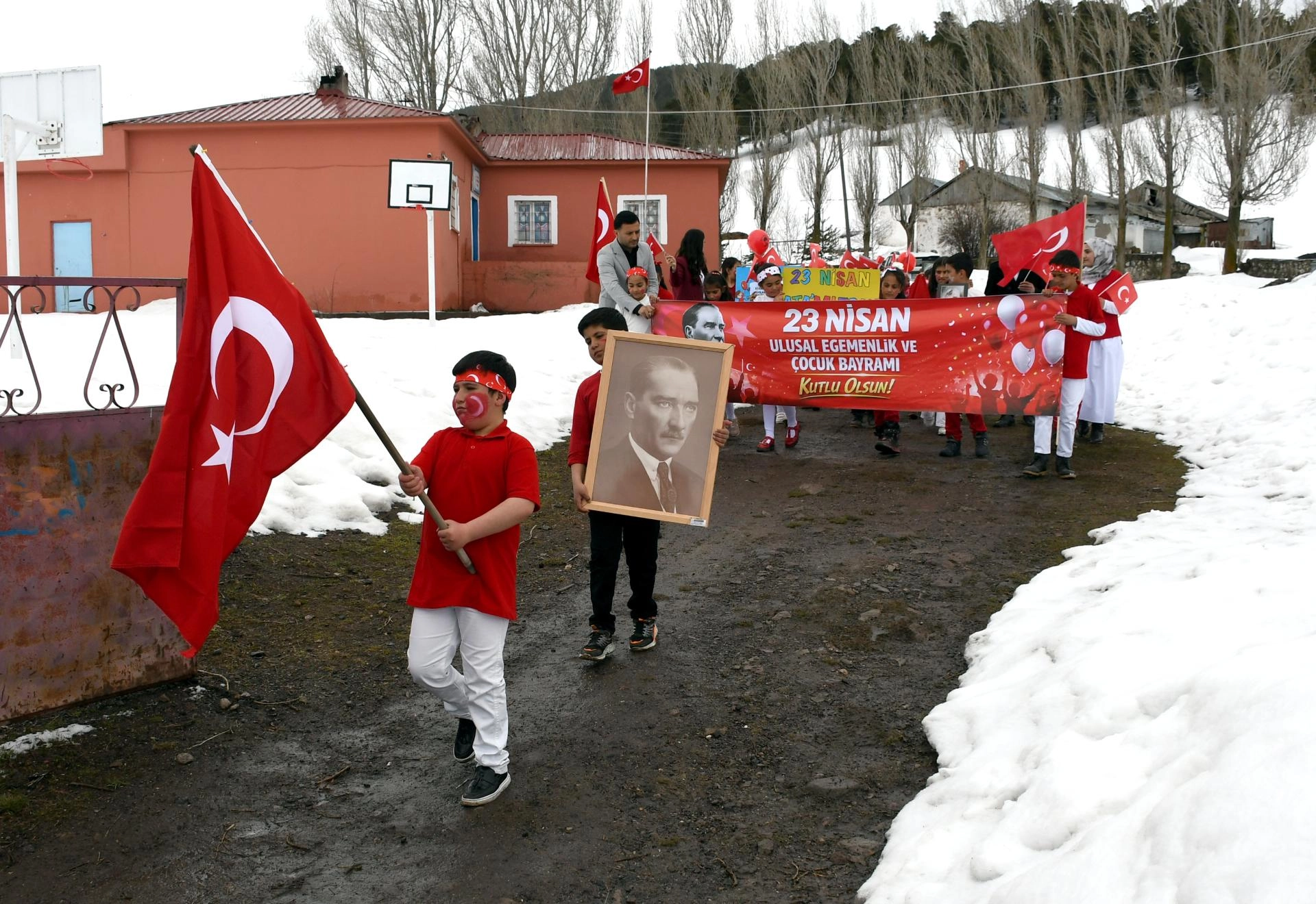 Kars'ta köy okulundaki öğrencilerden anlamlı ve duygusal 23 Nisan yürüyüşü