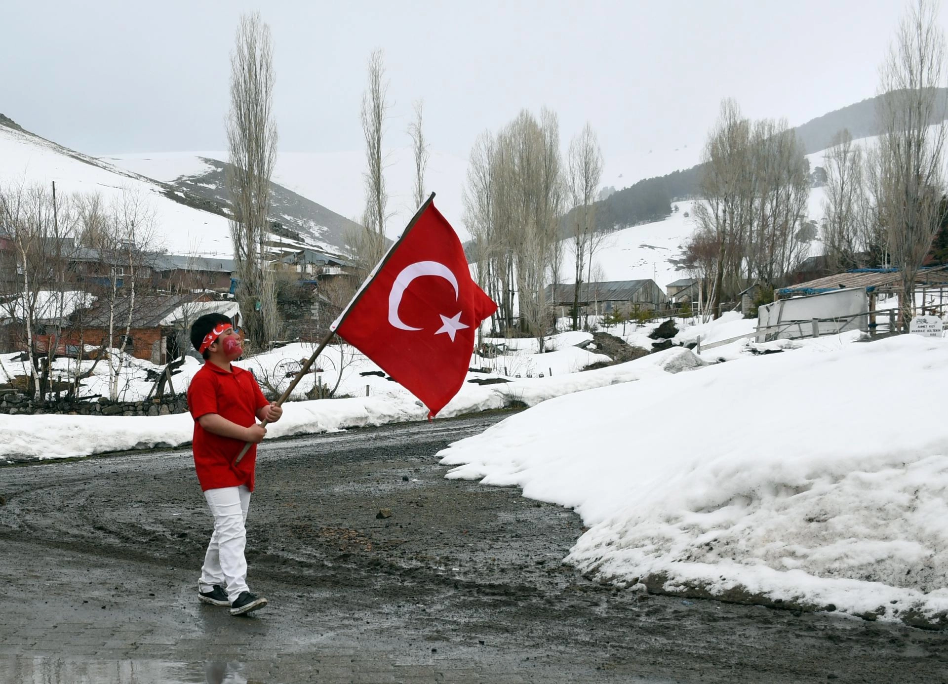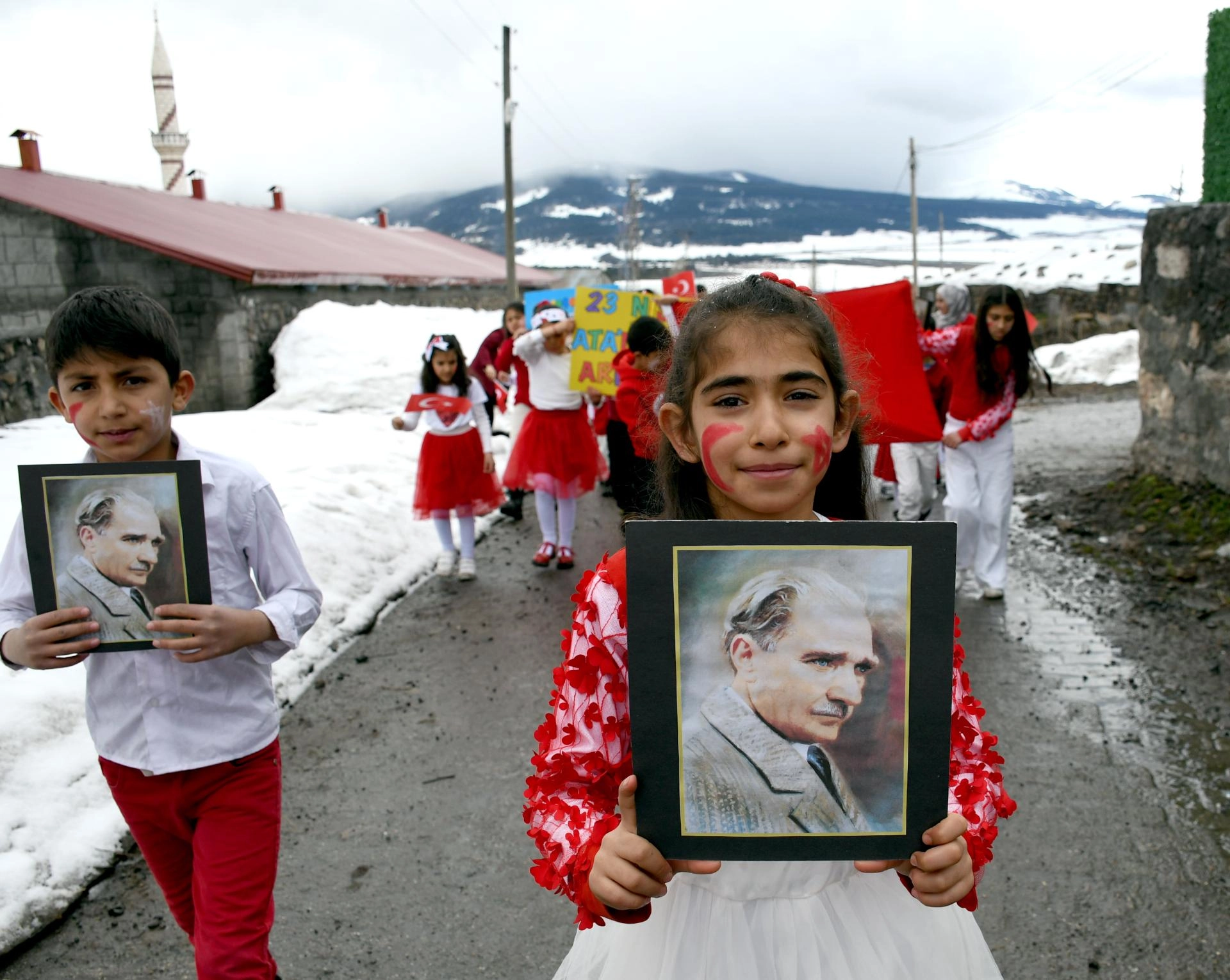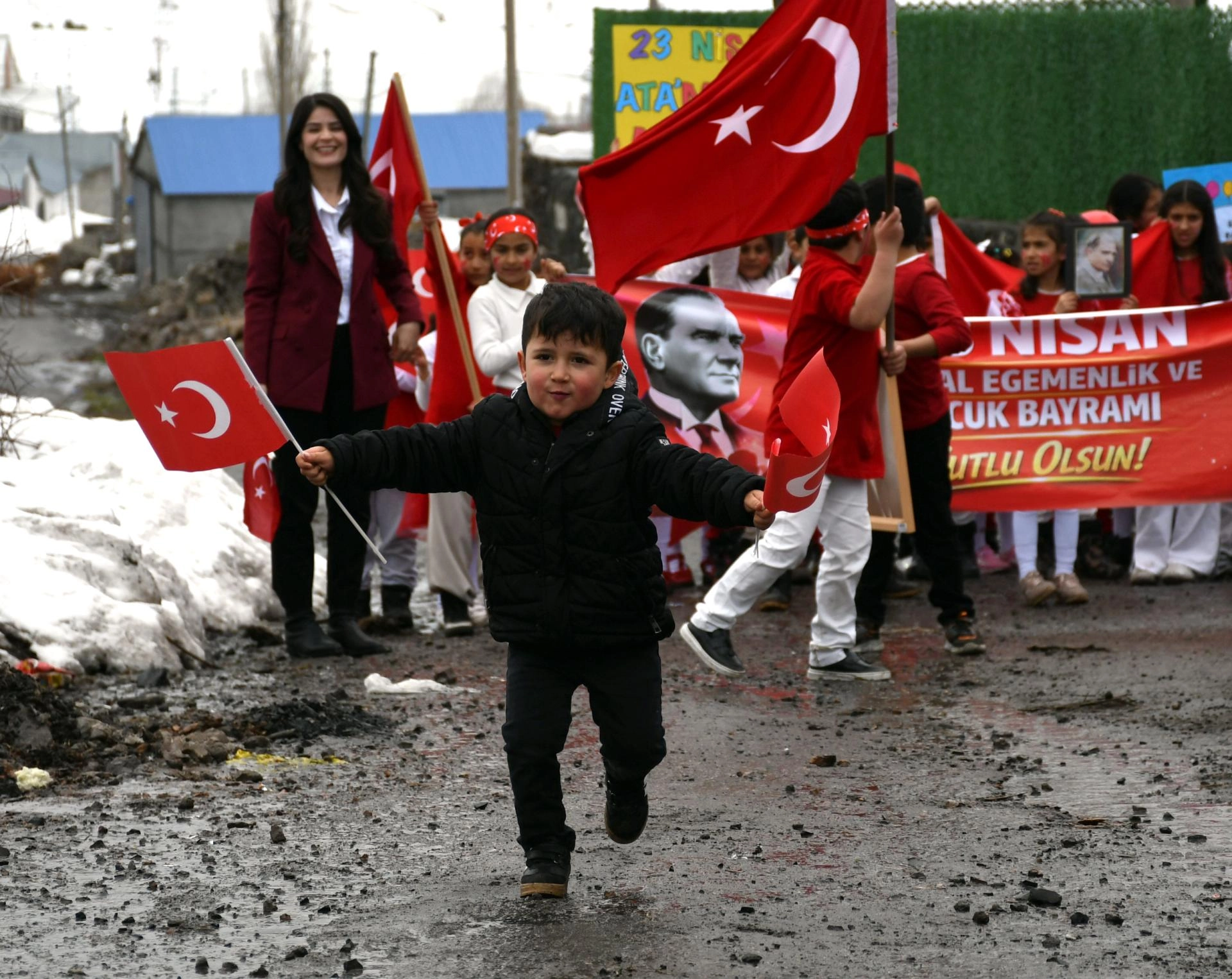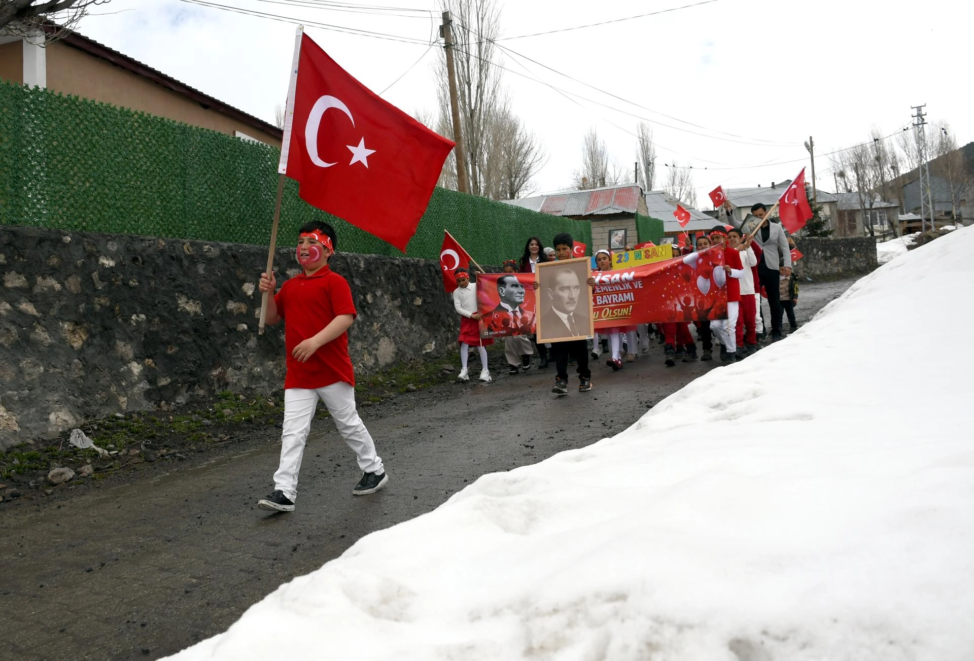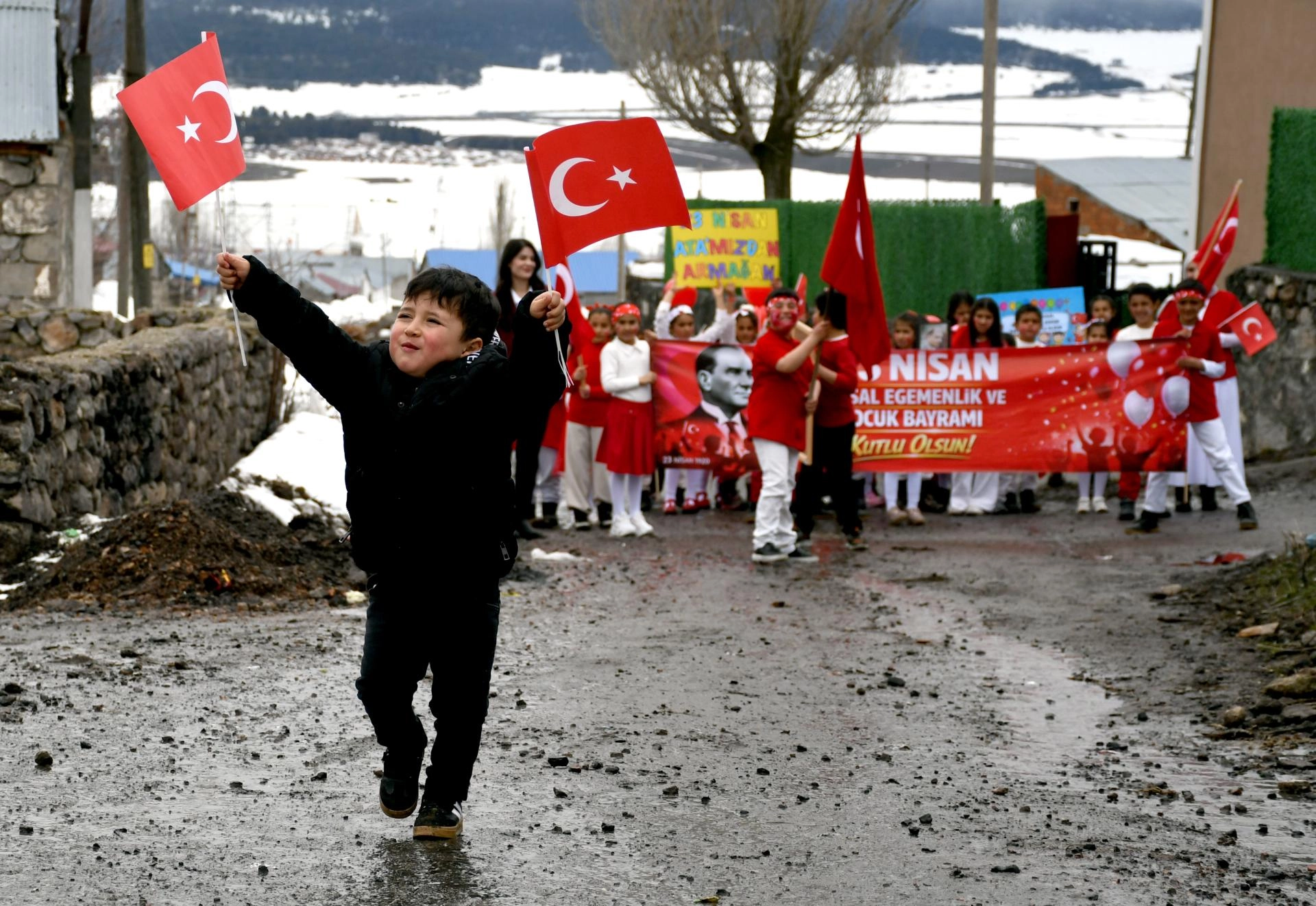 Kars'ta köy okulundaki öğrencilerden anlamlı ve duygusal 23 Nisan yürüyüşü