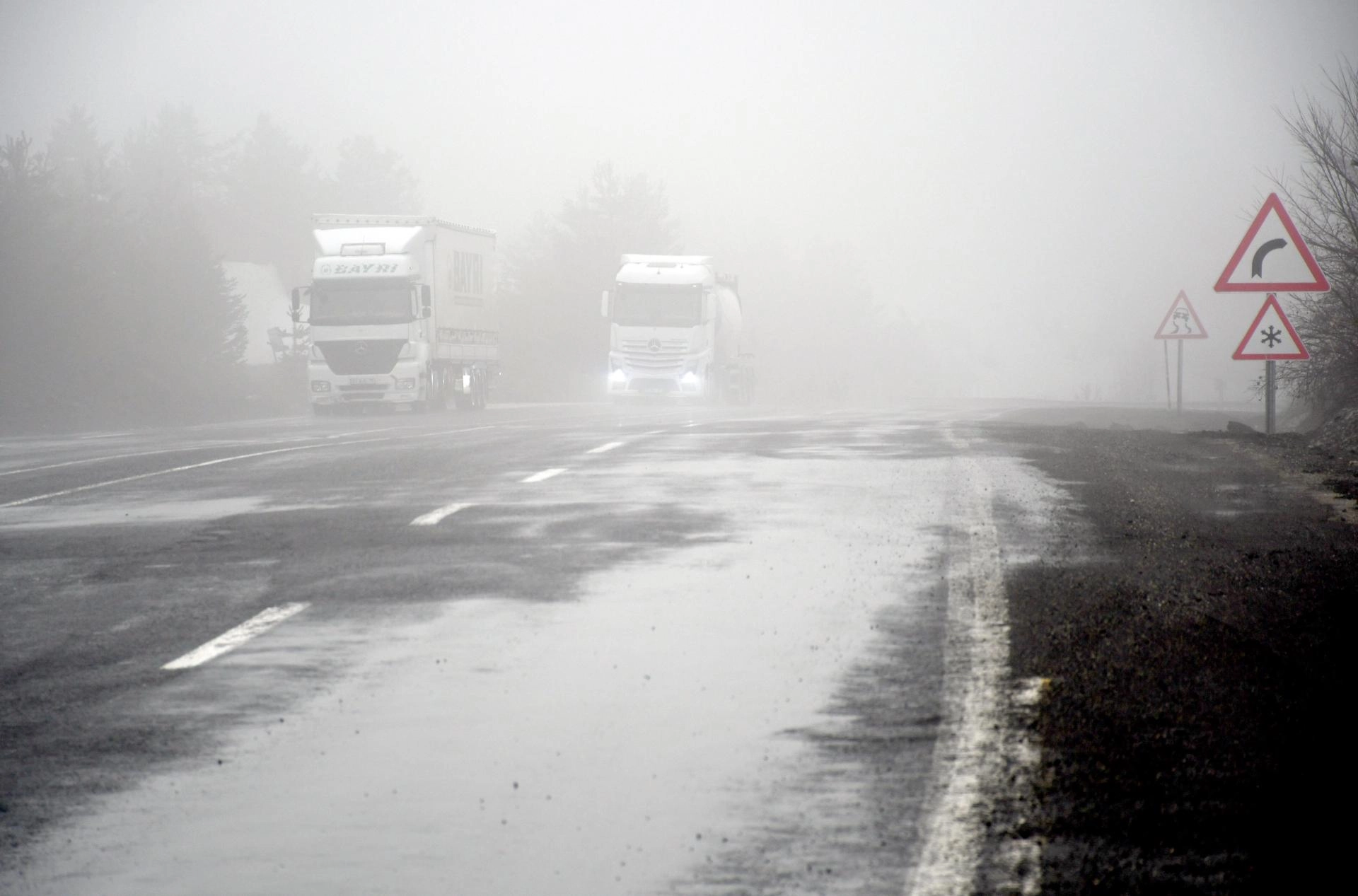 Sis nedeniyle Kars-Erzurum kara yolunun Mescitli mevkisinde görüş mesafesi 30 metreye düştü, araçlar kontrollü şekilde ilerledi.