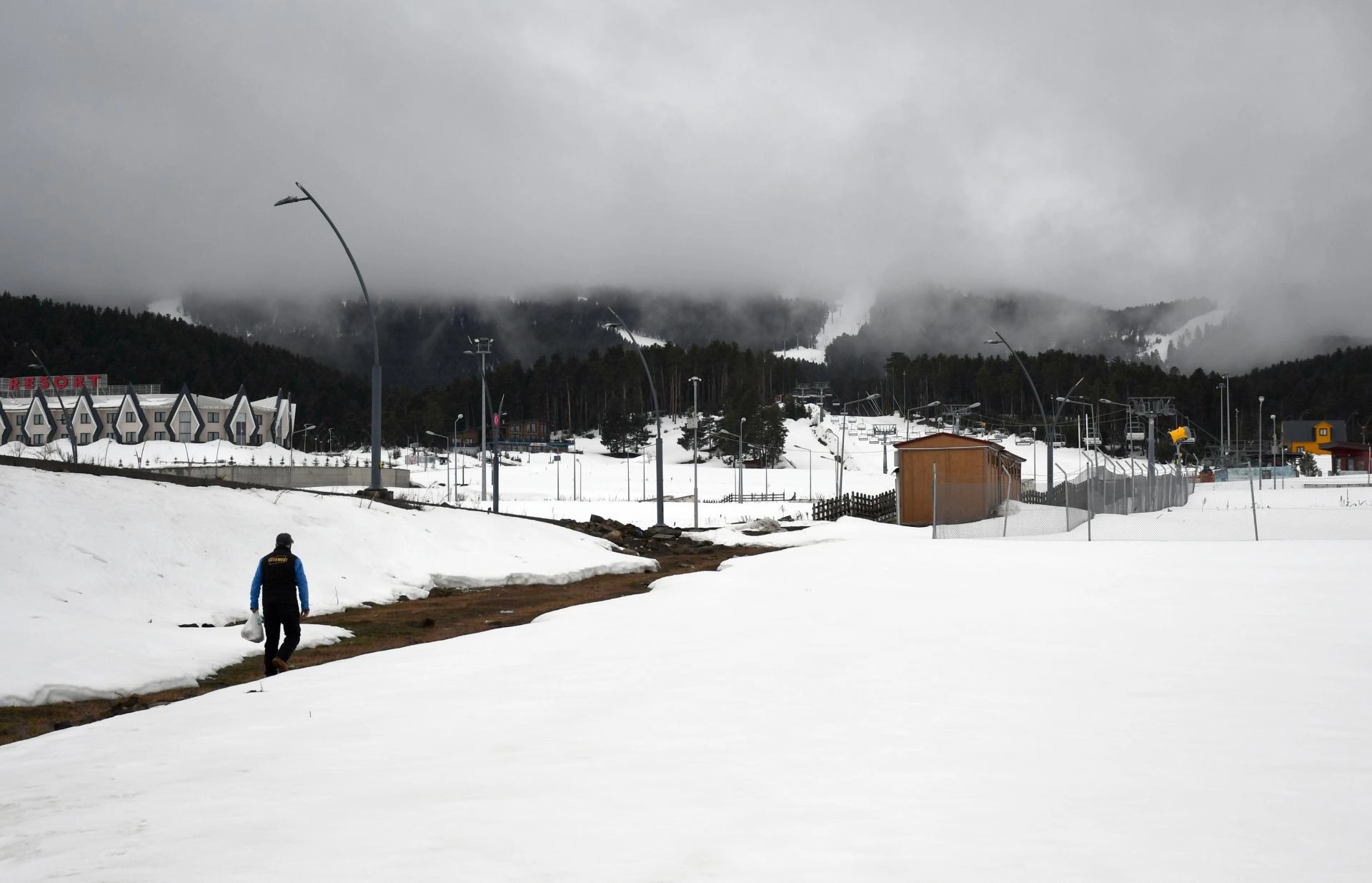 Sarıkamış Kayak Merkezinin zirvesi ve sarıçam ormanları sisle birlikte güzel görüntü oluşturdu.