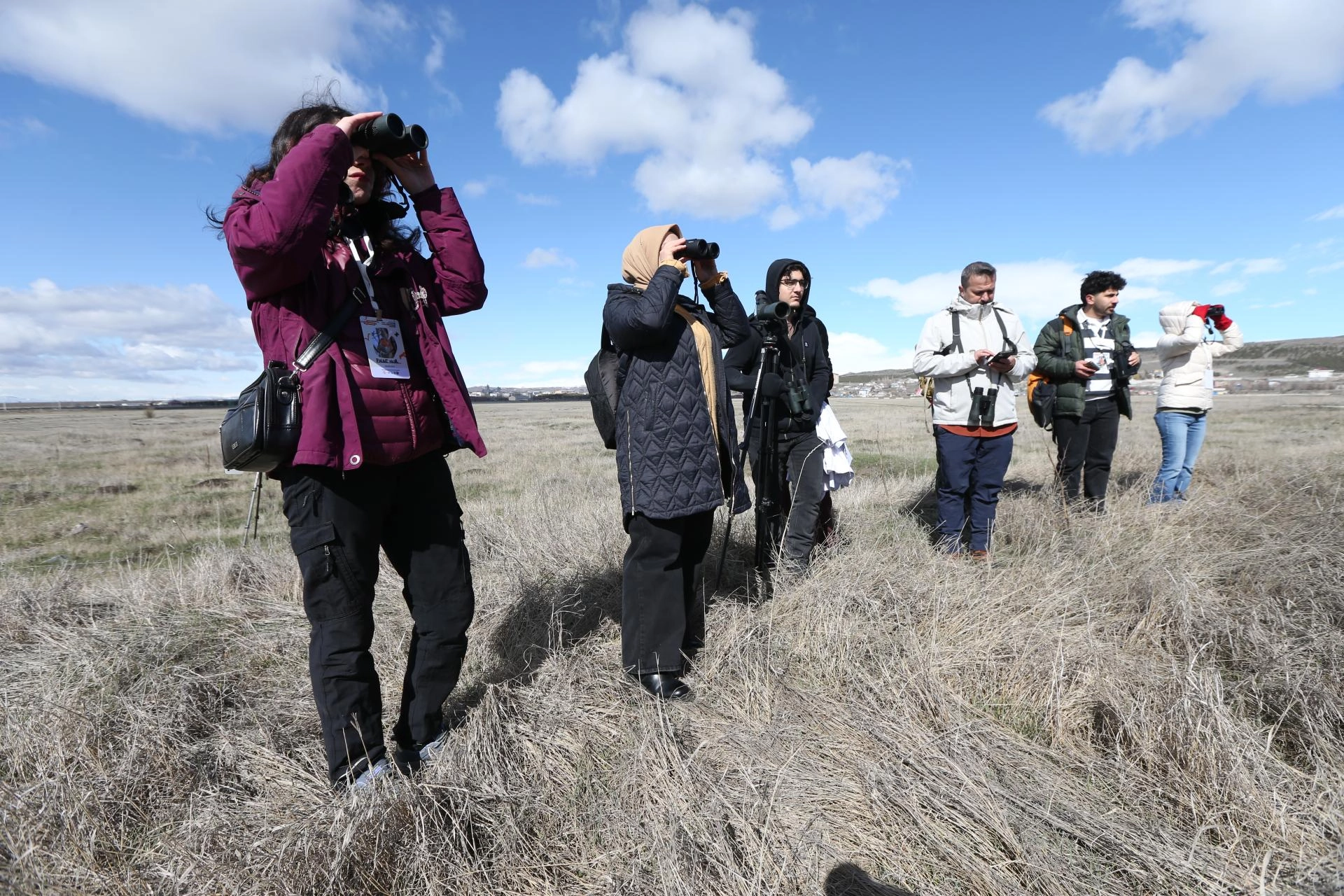 KARS (AA) - CÜNEYT ÇELİK - Kars'ta üniversite öğrencileri, Gençlik ve Spor Bakanlığının ÜNİDES programı kapsamında desteklenen "Genç Gözler, Kuş Gözler" projesiyle göç yolundaki kuşları gözlemleyerek bilinçleniyor.
