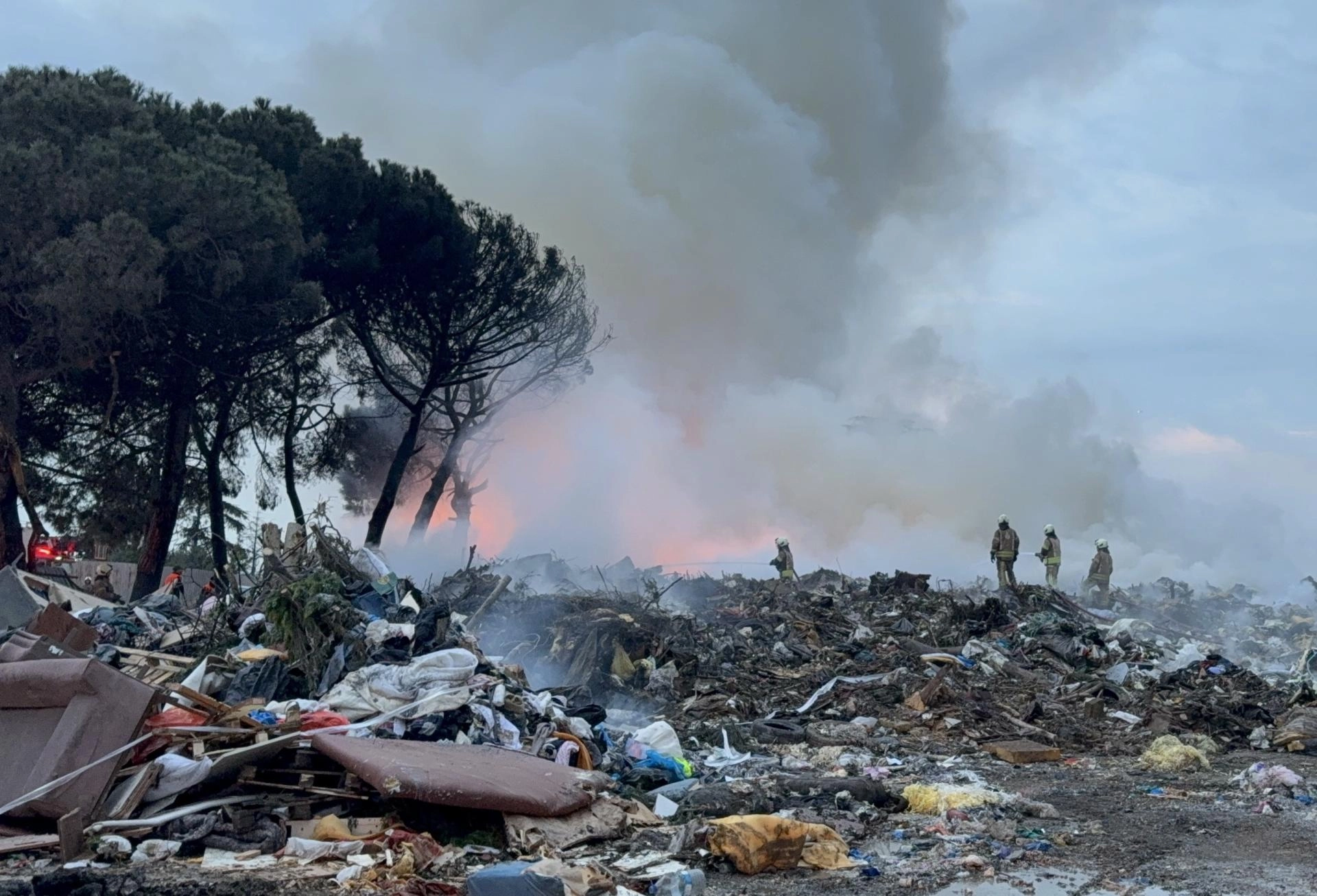 İSTANBUL (AA) - Kartal'da bir çöplükte çıkan ve birçok ağacın zarar gördüğü yangına itfaiye ekiplerince müdahale ediliyor.