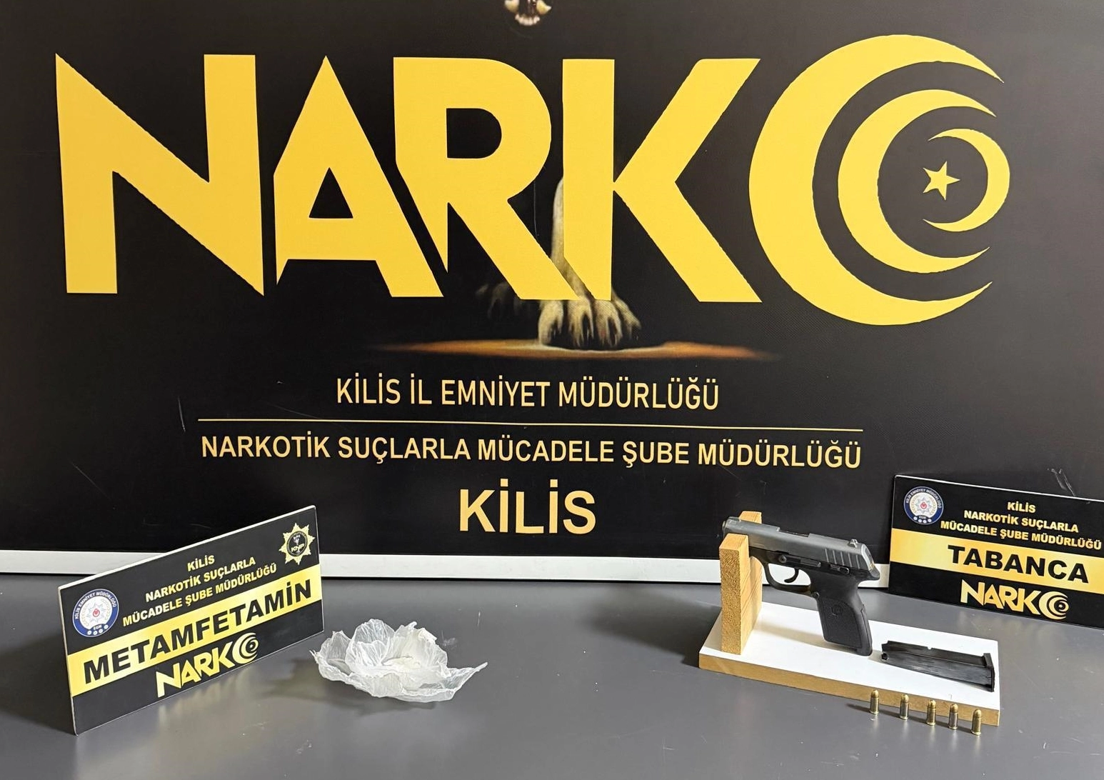 Adreslerde yapılan aramada, 80 gram sentetik uyuşturucu, uyuşturucu aparatı, ruhsatsız tabanca ile 5 fişek ve el telsizi ele geçirildi.