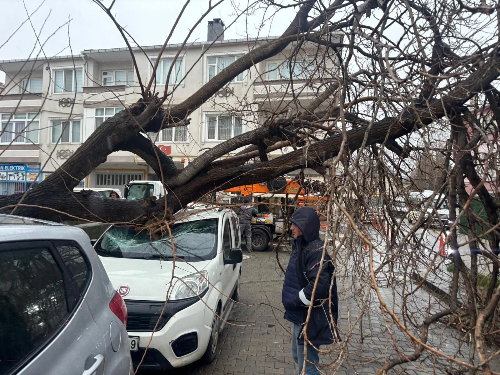 Kırklareli'nde fırtınada üzerine ağaç devrilen otomobil hasar gördü