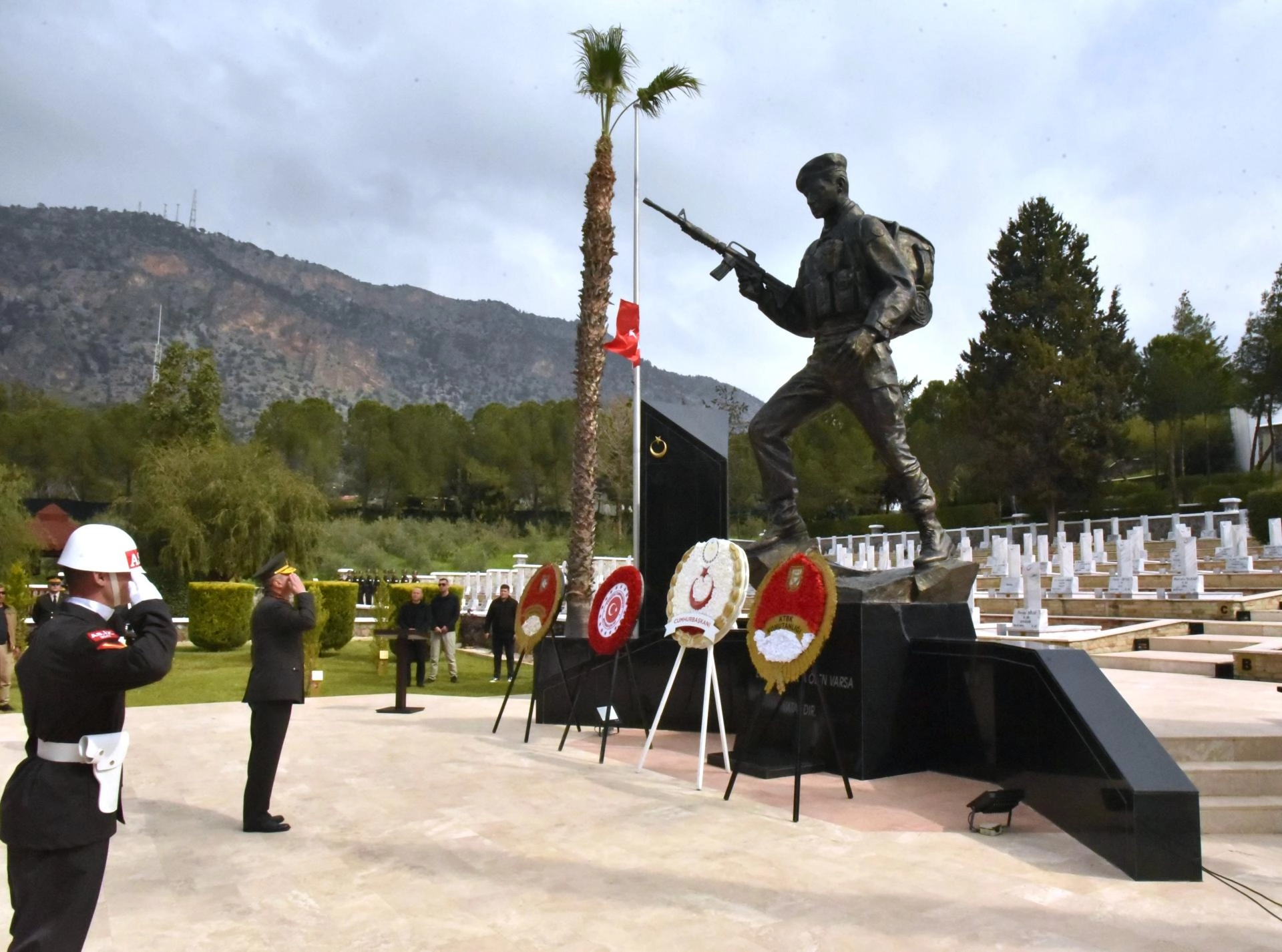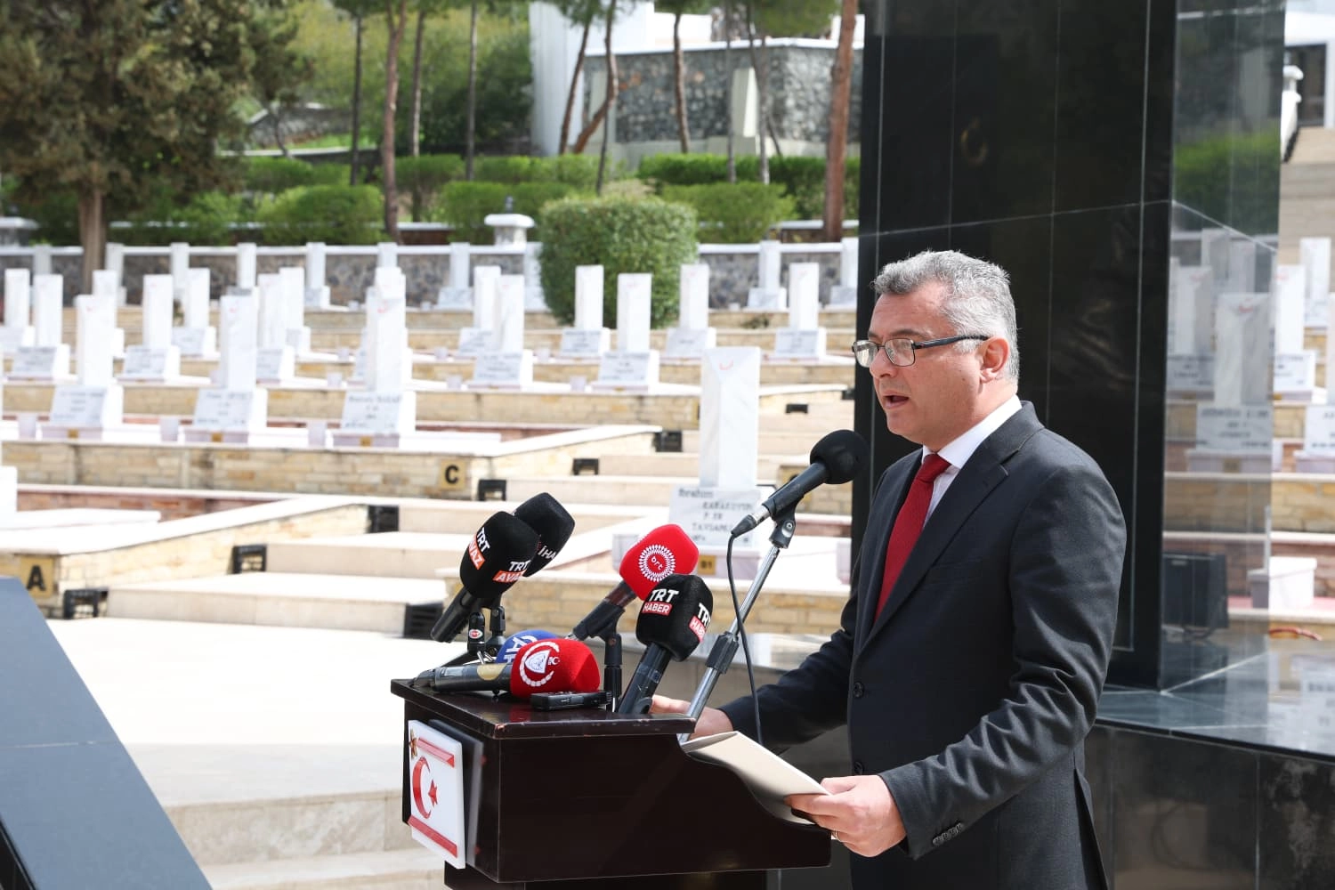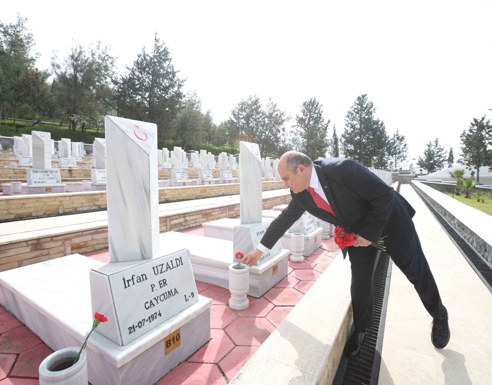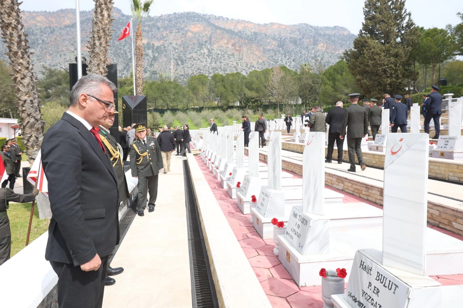 Cumhurbaşkanı Erhürman’ın konuşmasının ardından şehit kabirleri ziyaret edilerek çiçekler sunuldu ve dualar okundu.