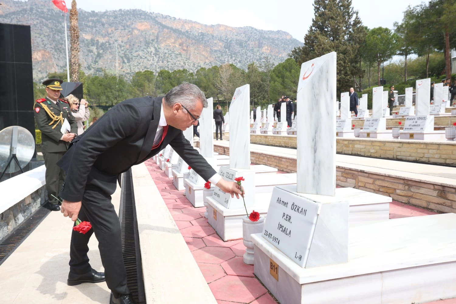 Lefkoşa Kaymakamı Cemal Kuyucu’nun, Şehitlik Özel Defteri’ni imzaladığı törende, Şehit Aileleri ve Malul Gaziler Derneği Girne Bölge Başkanı Ersoy Talu ve 1'inci Piyade Alay Komutanlığından Piyade Teğmen Ahmet Cin, günün anlam ve önemini belirten konuşmalar yaptı.