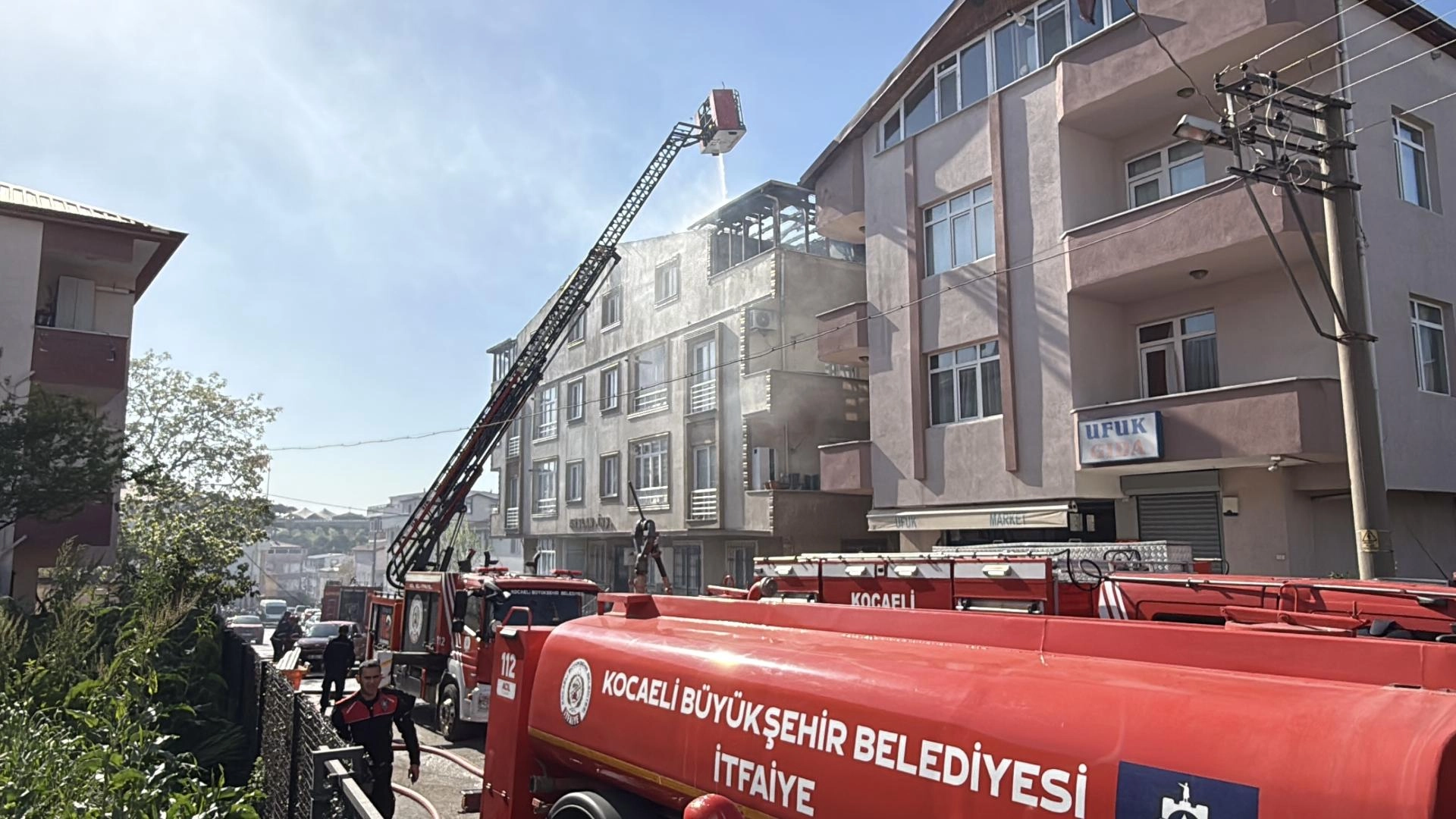 Kocaeli'de apartmanın çatısında çıkan yangın hasara neden oldu