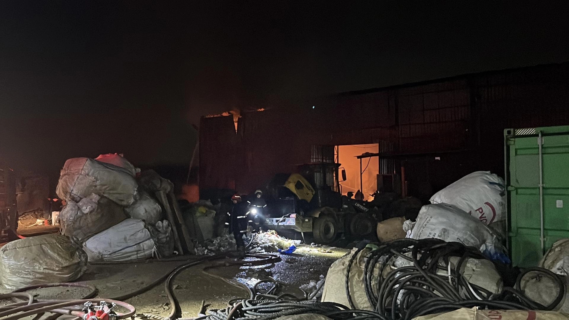Pelitli Mahallesi 4464. Sokak'taki plastik atık deposunda henüz belirlenemeyen nedenle yangın çıktı.